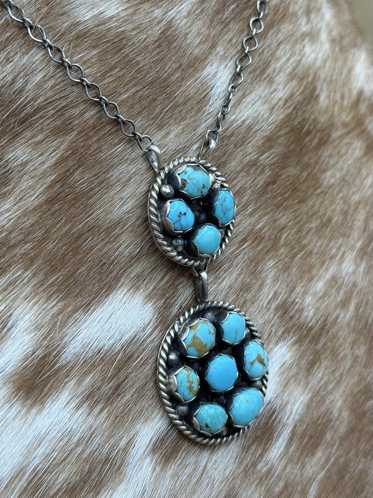 Navajo Handmade Sterling Silver Blue Glacier Turquoise Cluster Drop Pendant