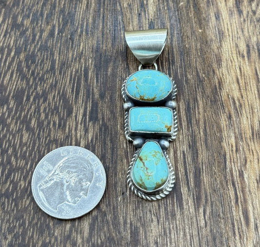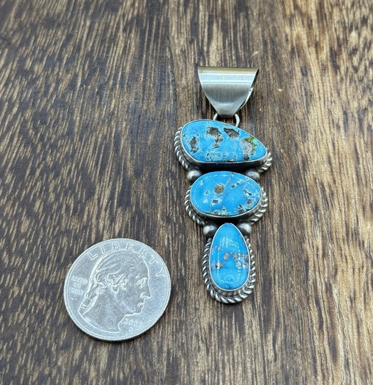 Native Navajo Handmade Sterling Silver Blue Bird Turquoise Cluster Drop Pendant