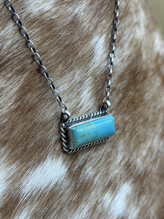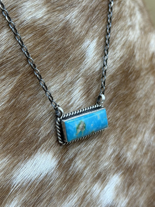 Navajo Handmade Sterling Silver Kingman Turquoise Bar Necklace 16” Augustine L.