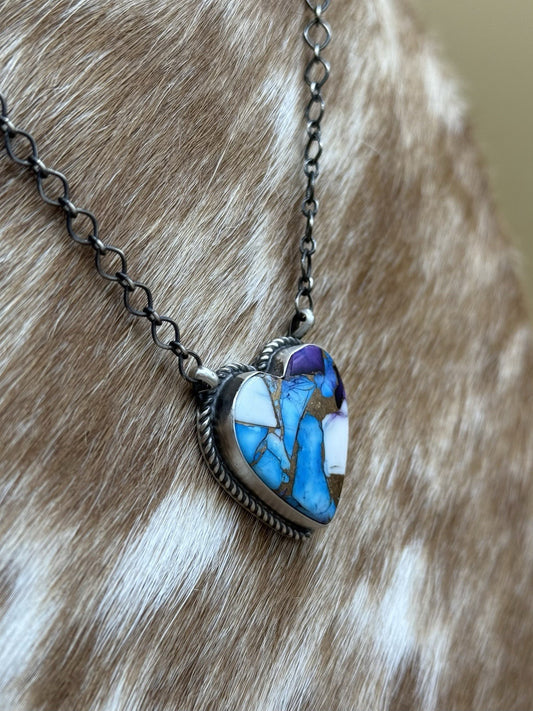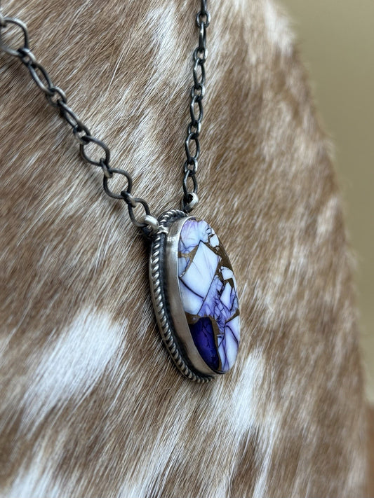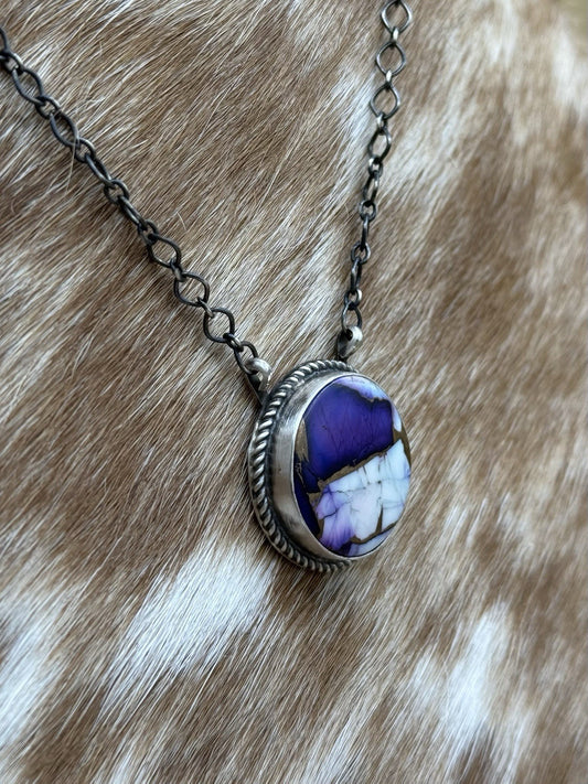 Navajo Handmade Sterling Silver Purple Spiny Oyster Necklace 18” By Tricia Smith