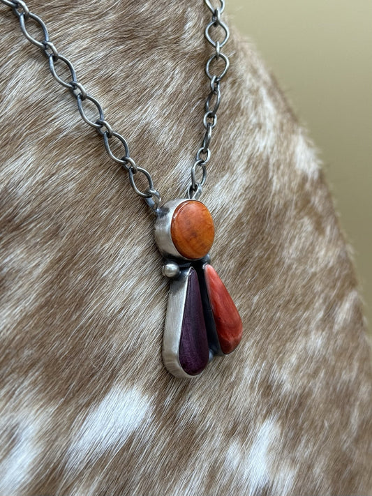 Navajo Handmade Sterling Silver Spiny Oyster Cluster Bar Necklace 18” Tricia S.