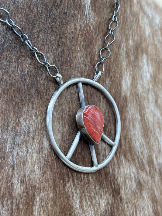 Navajo handmade Sterling Silver Red Spiny Oyster Peace Hippie Necklace 18”
