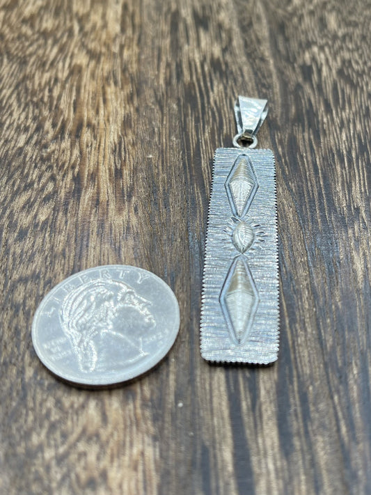 Navajo Handmade Sterling Silver Stamped Old Look Pendant By Ronnie Henry
