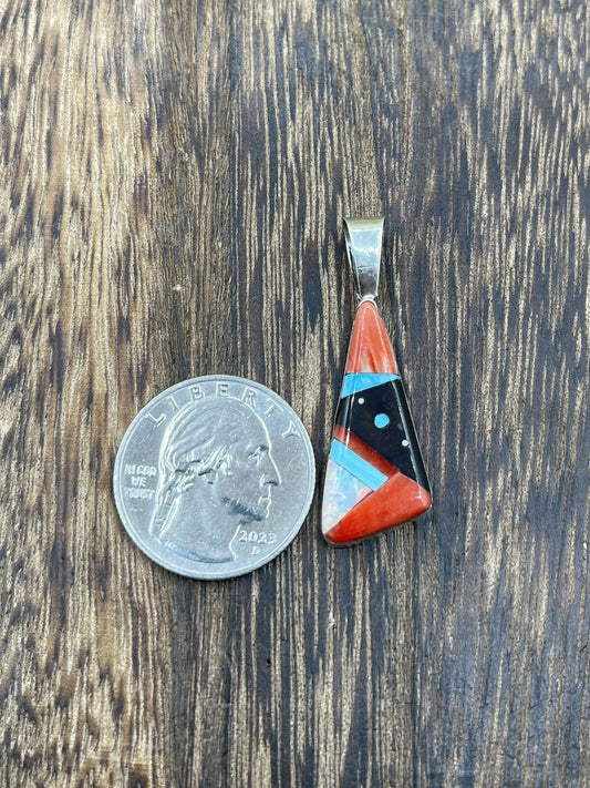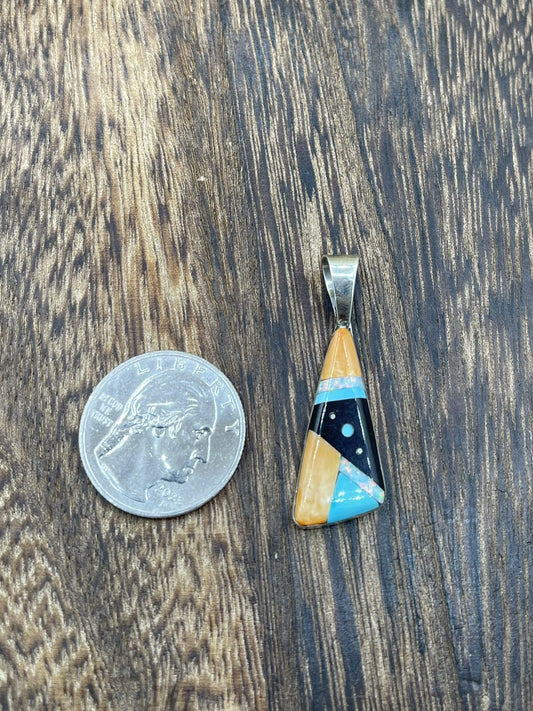 Native American Navajo Handmade Sterling Silver Multi Stone Inlay Pendant