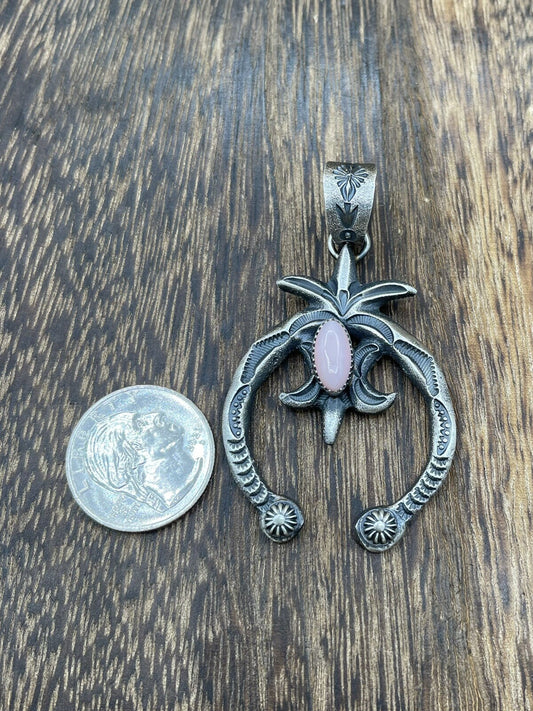 Native American Indian Navajo Handmade Silver Old Look Pink Concho Naja Pendant