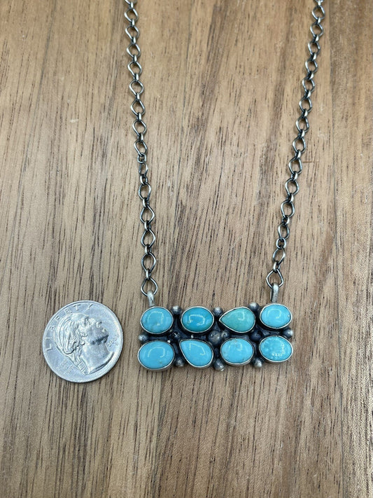 Native American Navajo Handmade Silver Turquoise Cluster Bar Necklace 18