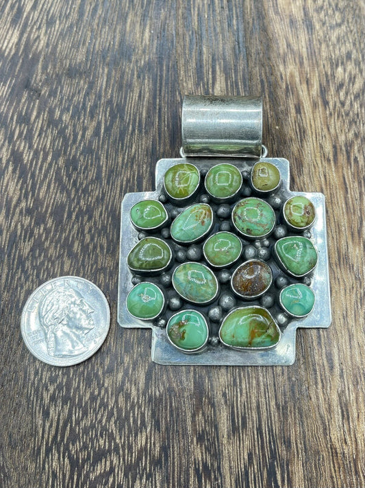Native American Sterling Silver Navajo Handmade Large Turquoise Pendant Vintage