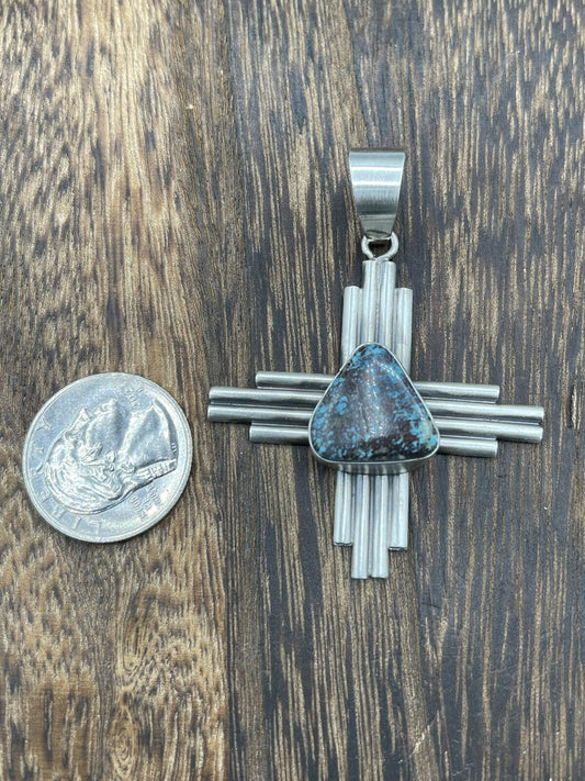 Native American Sterling Silver Navajo Handmade Turquoise Zia Pendant -Betta Lee