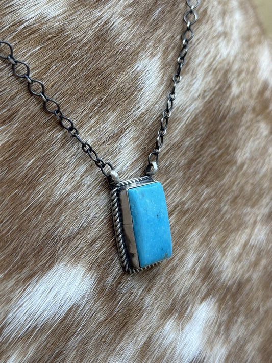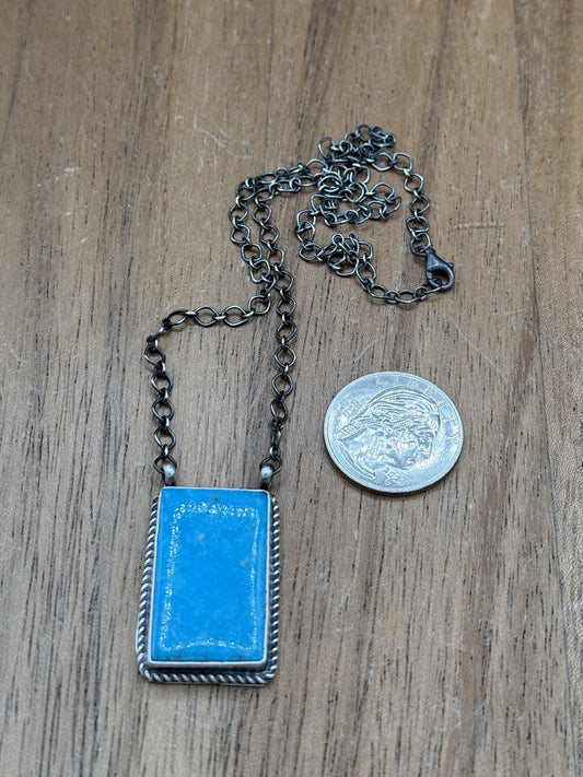 Navajo Handmade Sterling Silver Kingman Turquoise Bar Necklace 18” By Tricia S.