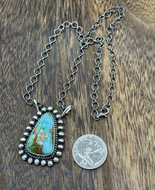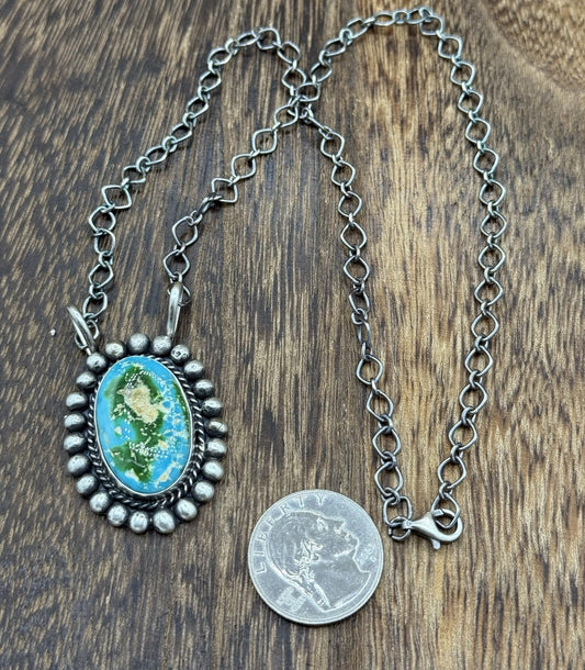Native American Sterling Silver Navajo Handmade Turquoise Pendant - Betta Lee