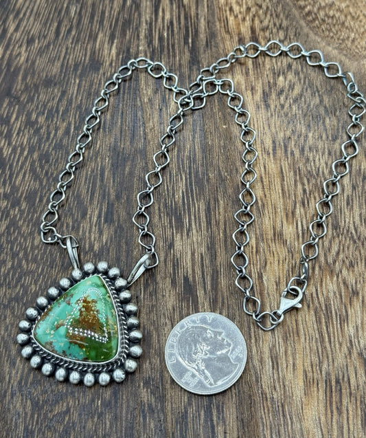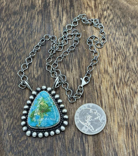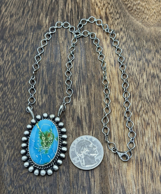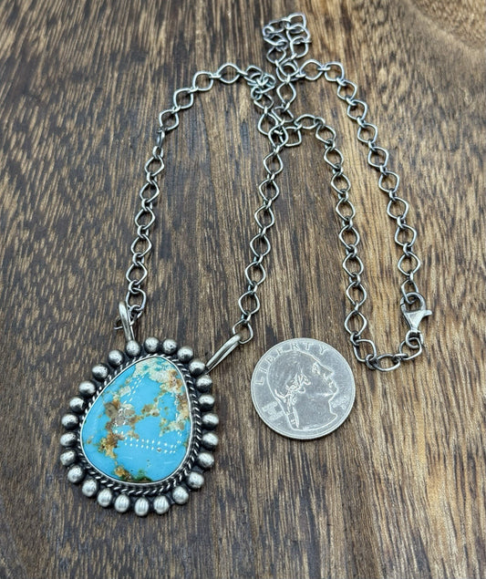 Native Navajo Handmade Sterling Silver Sonoran Gold Turquoise Necklace 18” Large