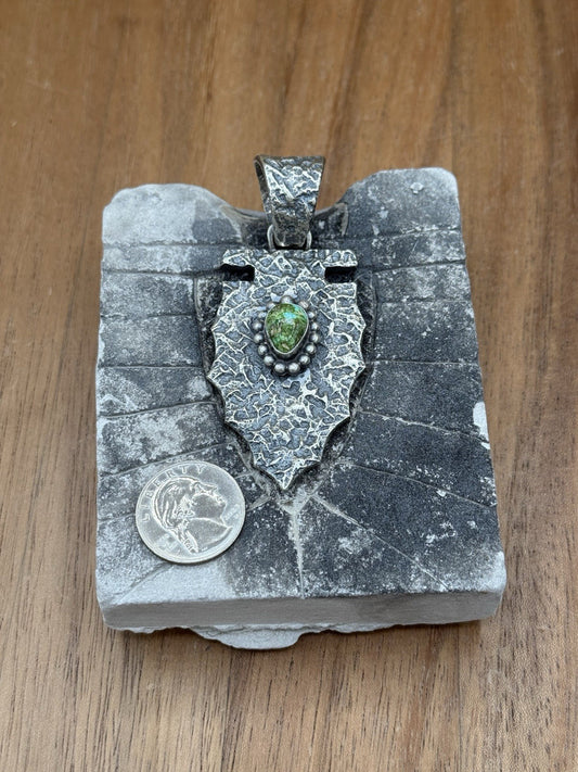Navajo Silver Sonoran Gold Turquoise Arrowhead Pendant Tufa Cast By Merle House