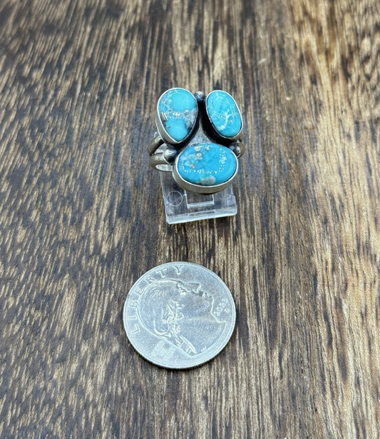 Navajo Handmade Sterling Silver Sonoran Gold Turquoise Half Cluster Ring Size 8