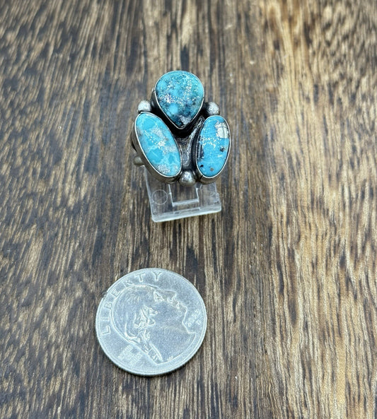 Native American Sterling Silver Navajo Handmade Natural Turquoise Ring Size 6.5