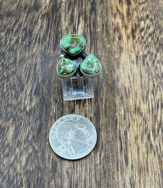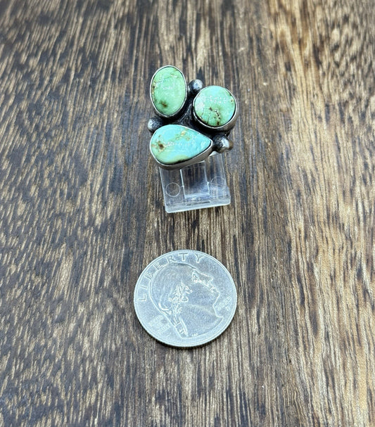 Navajo Handmade Sterling Silver Sonoran Gold Turquoise Cluster Ring Size 8