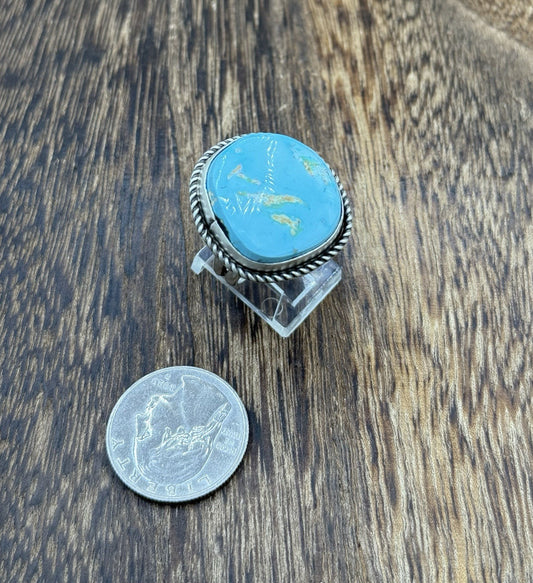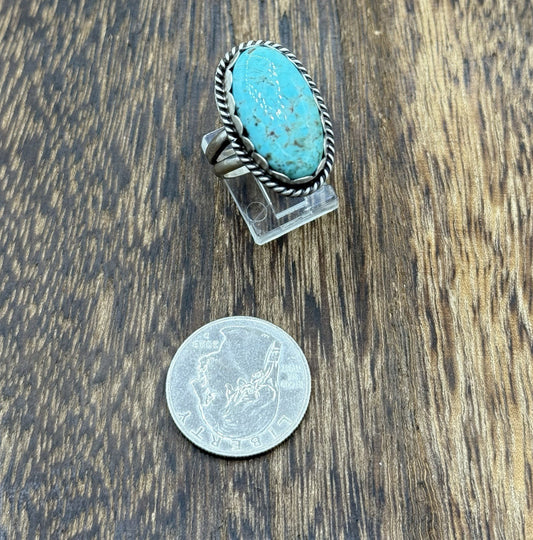 Native American Navajo Handmade Sterling Silver Royston Turquoise Ring Size 9