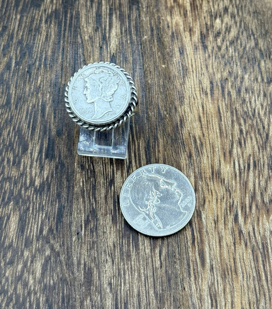 Native American Navajo Handmade Sterling Silver Liberty Dime Ring Size 7