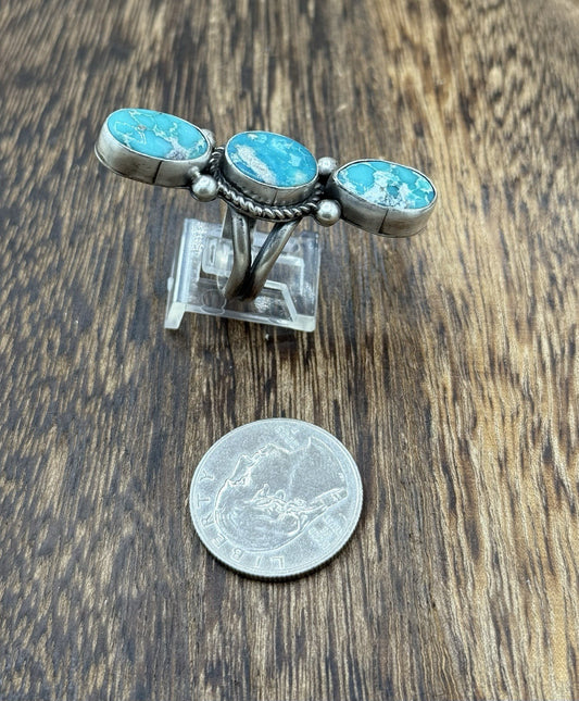 Navajo Handmade Sterling Silver Blue Bird Turquoise Cluster Ring Size 9