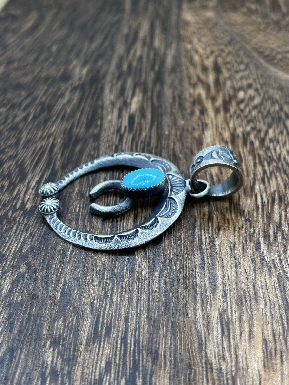 Native American Indian Navajo Handmade Silver Old Look Turquoise Naja Pendant
