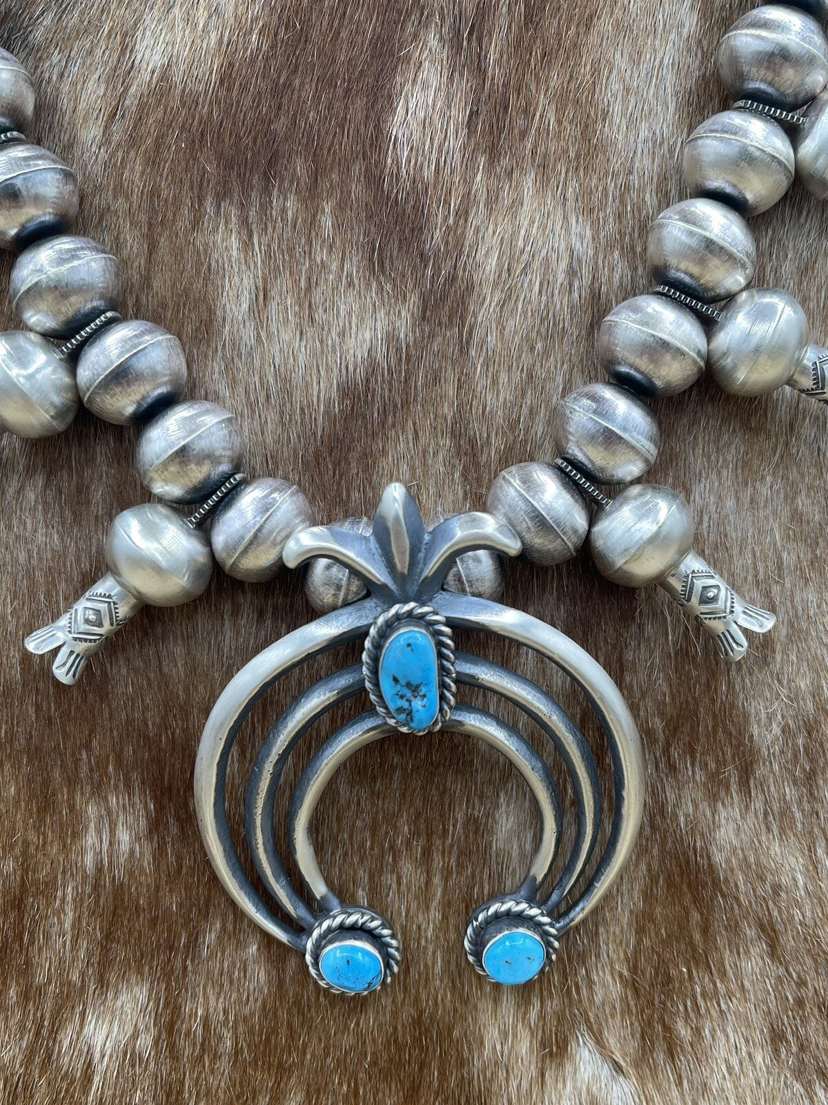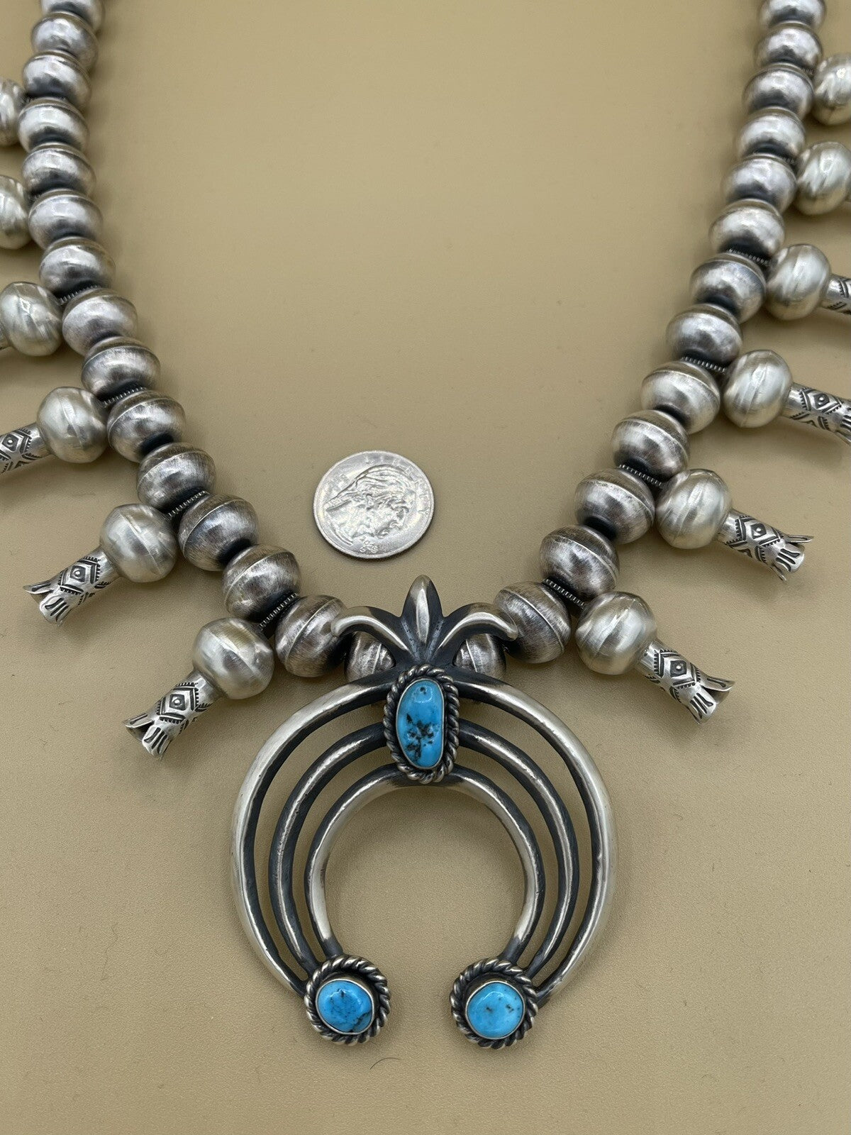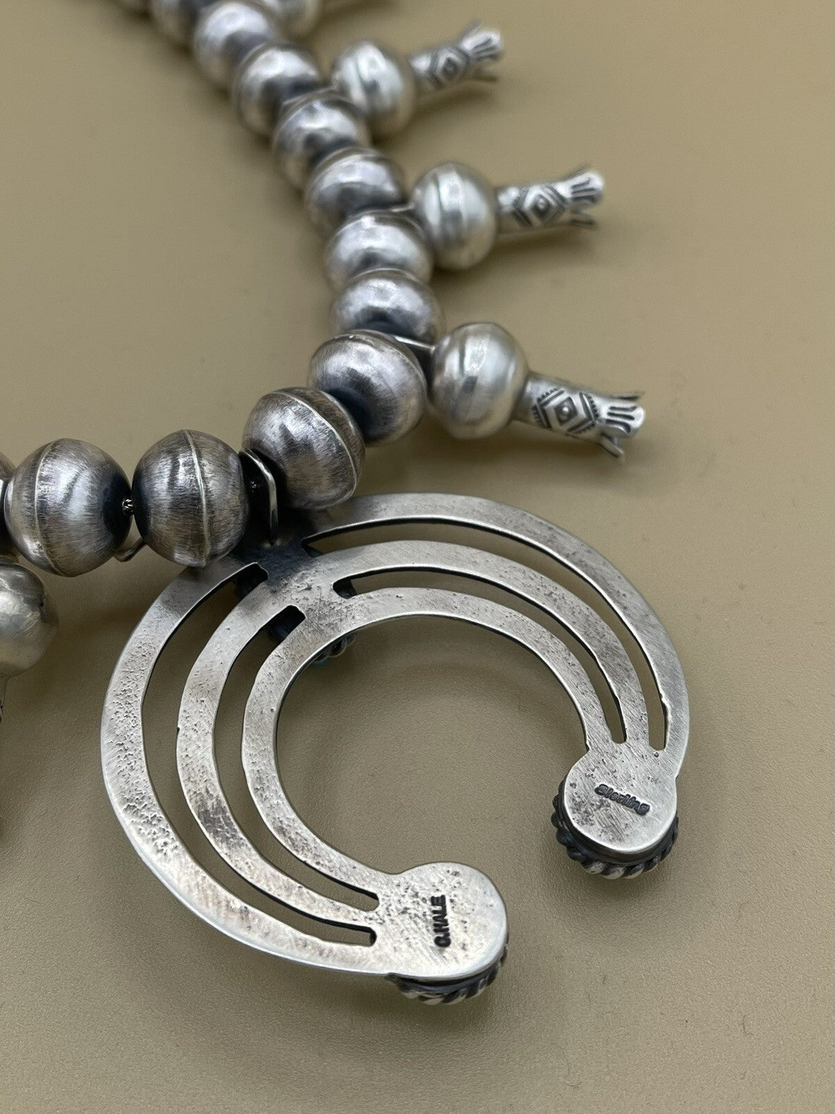 Native American Indian Navajo handmade Turquoise Squash Blossom Necklace Chris H