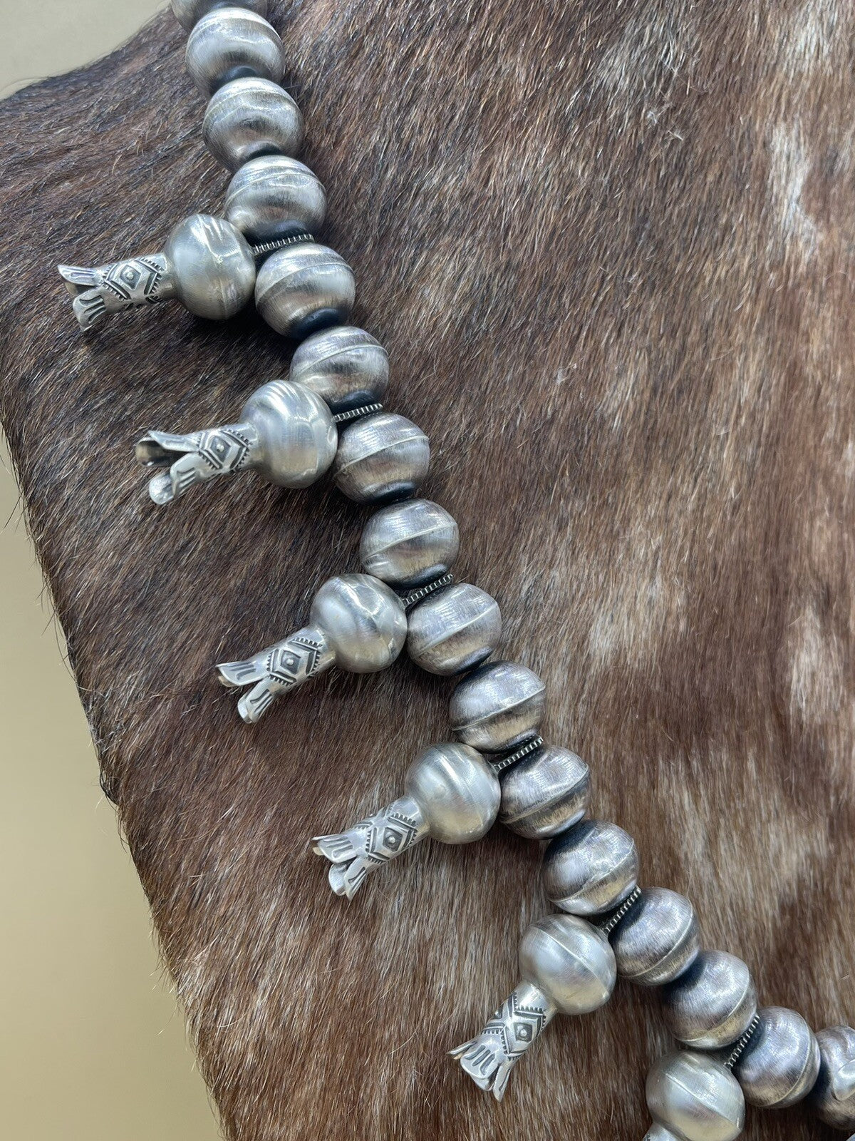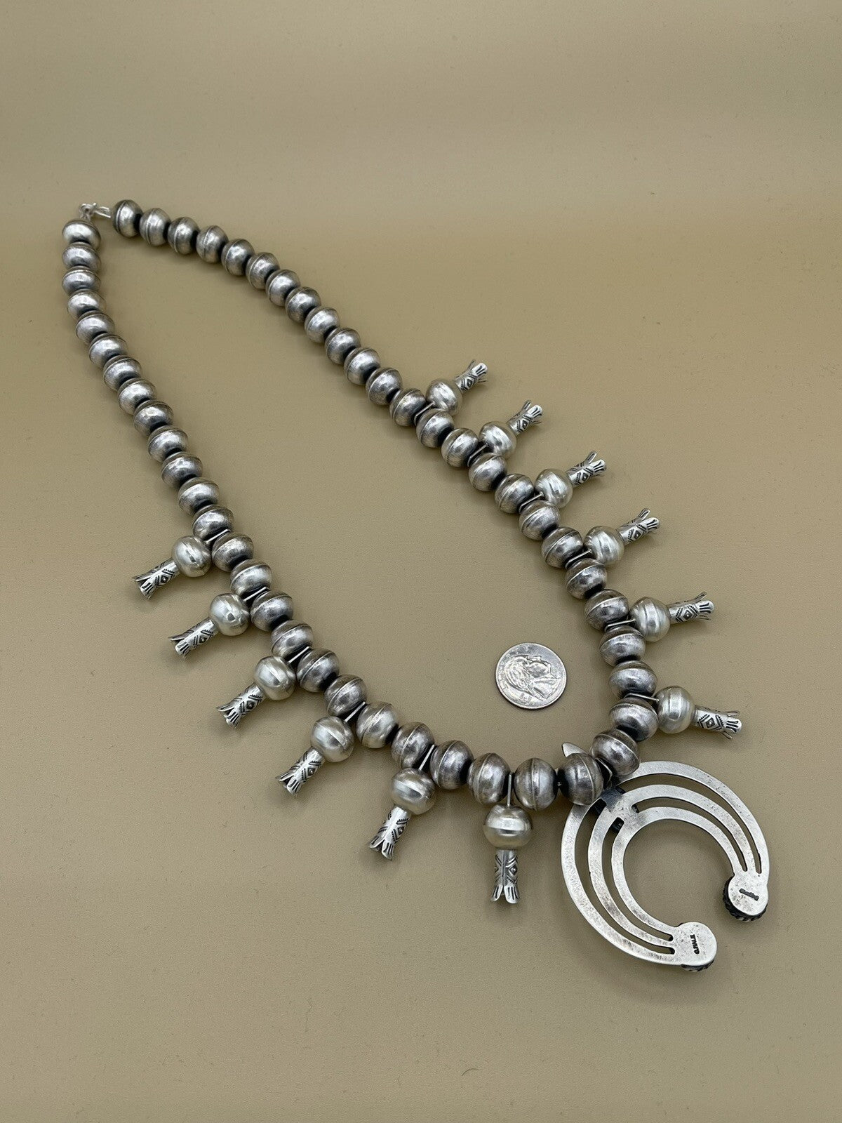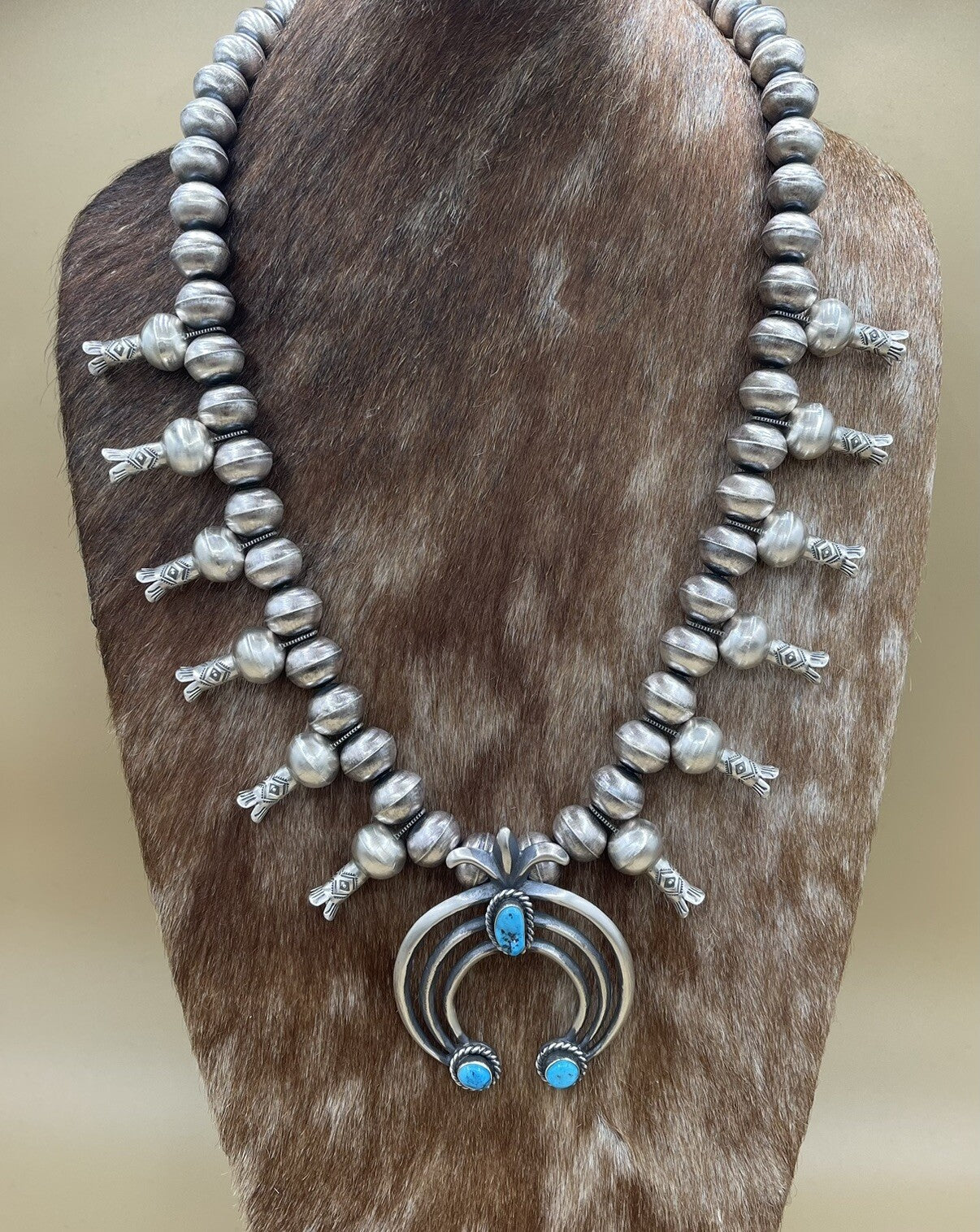 Native American Indian Navajo handmade Turquoise Squash Blossom Necklace Chris H