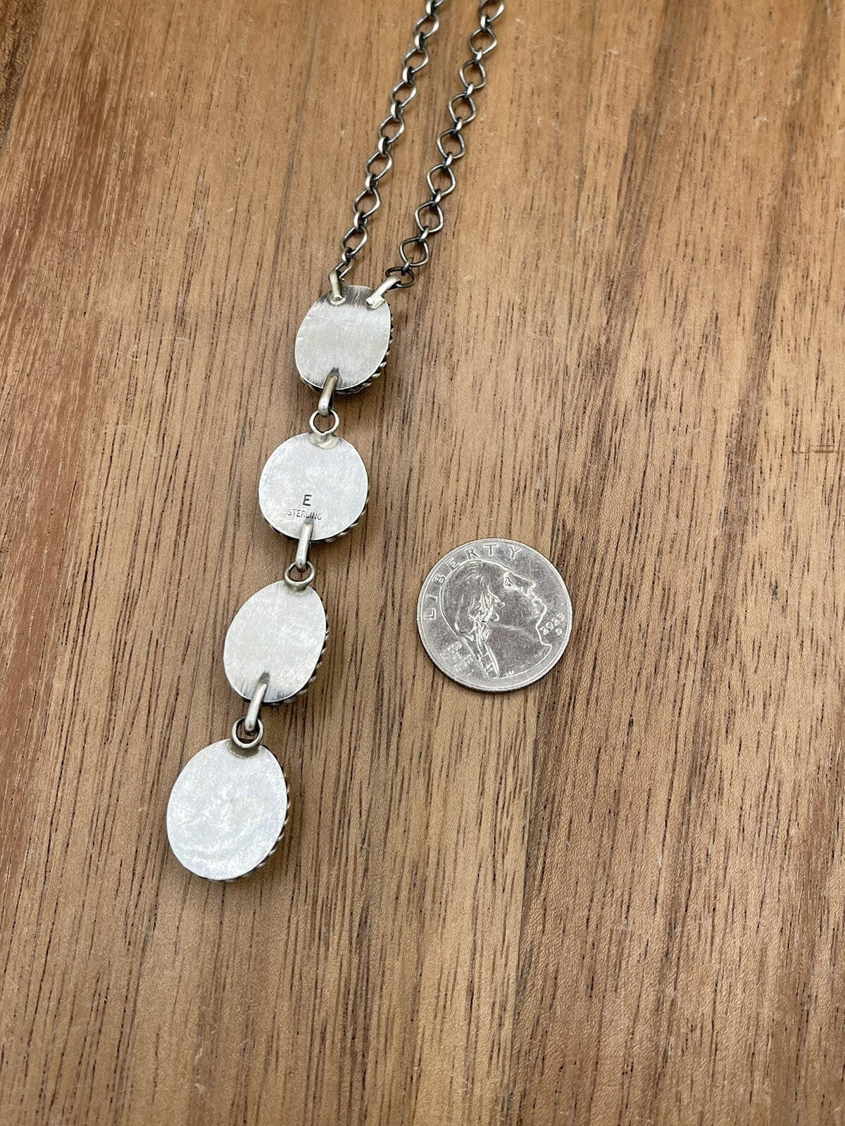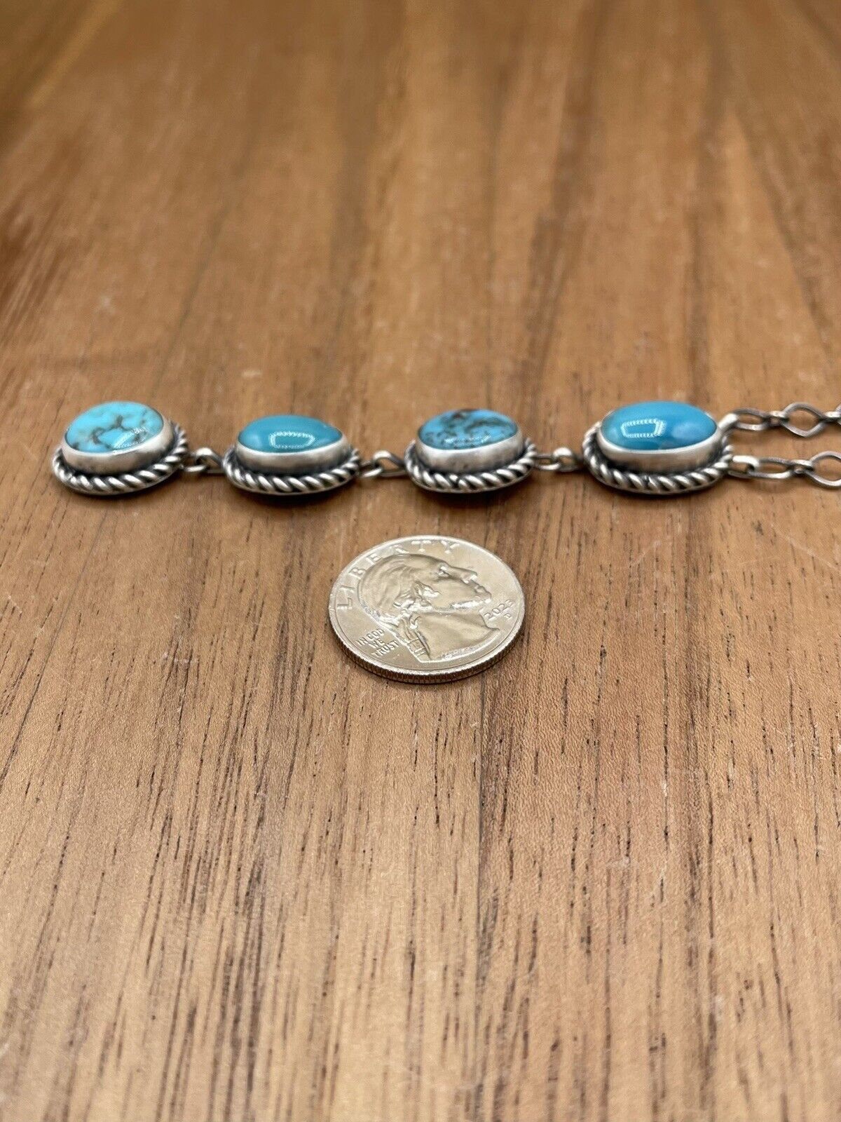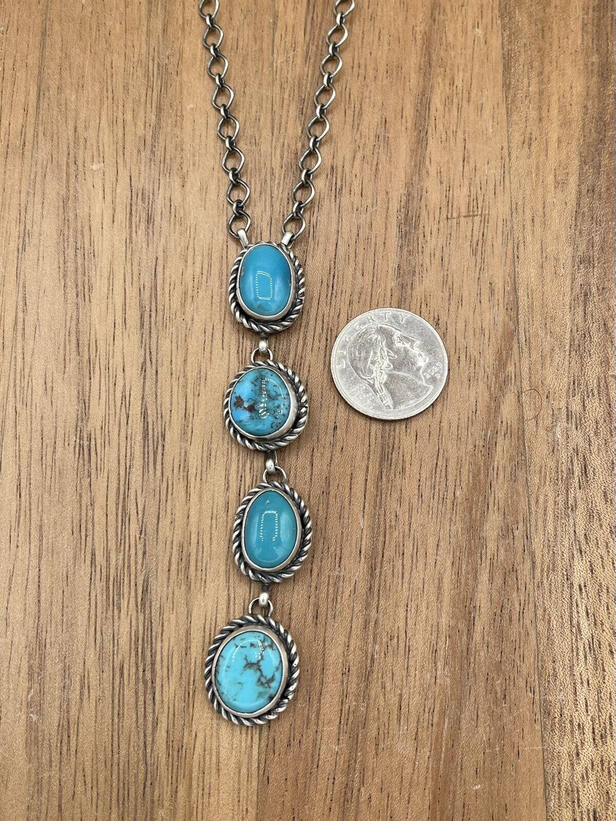 Native American Navajo Handmade Silver Egyptian Turquoise Drop Bar Necklace 18”