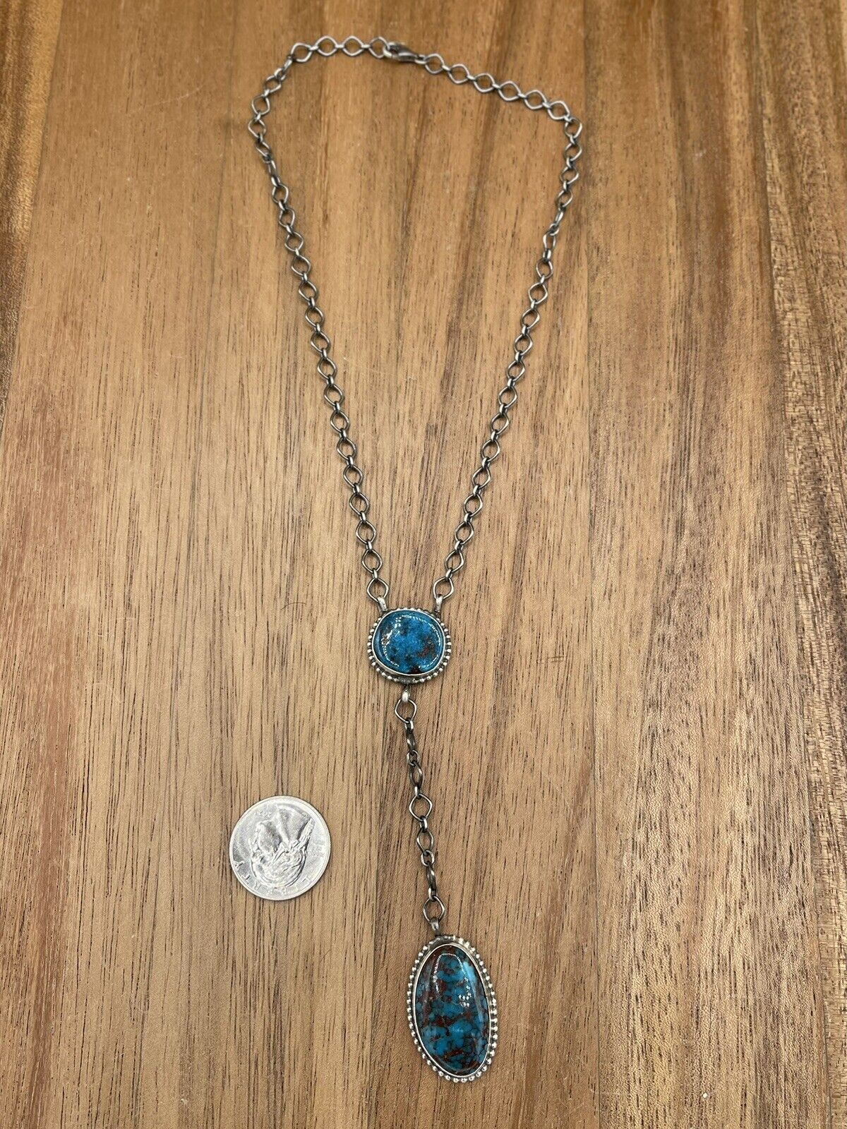 Native American Navajo Handmade Silver Egyptian Turquoise Y Lariat Necklace 16”