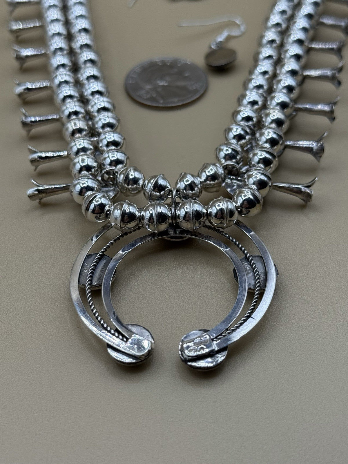 Native American Navajo Handmade Silver Kingman Turquoise Squash Blossom Set 18”