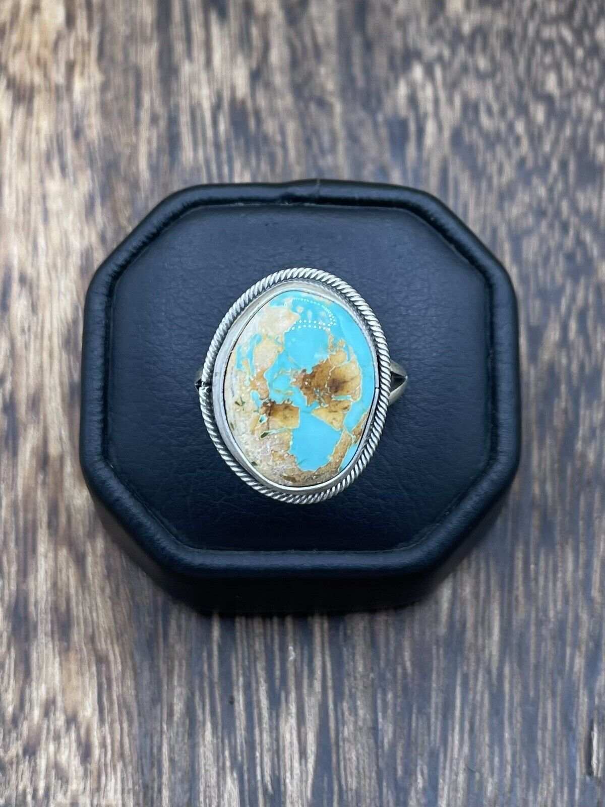 Native American Navajo Handmade Silver Royston Turquoise Old Look Ring Size 10
