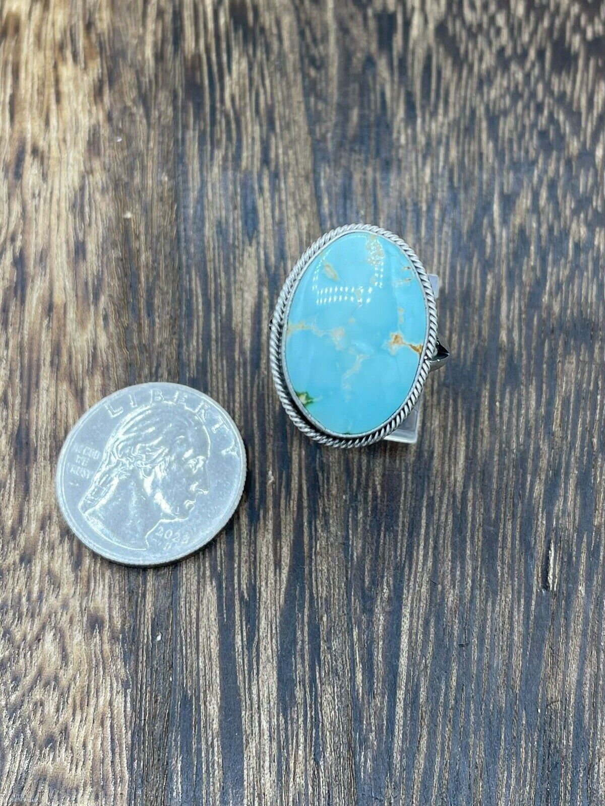 Native American Navajo Handmade Silver Royston Turquoise Old Look Ring Size 9.5