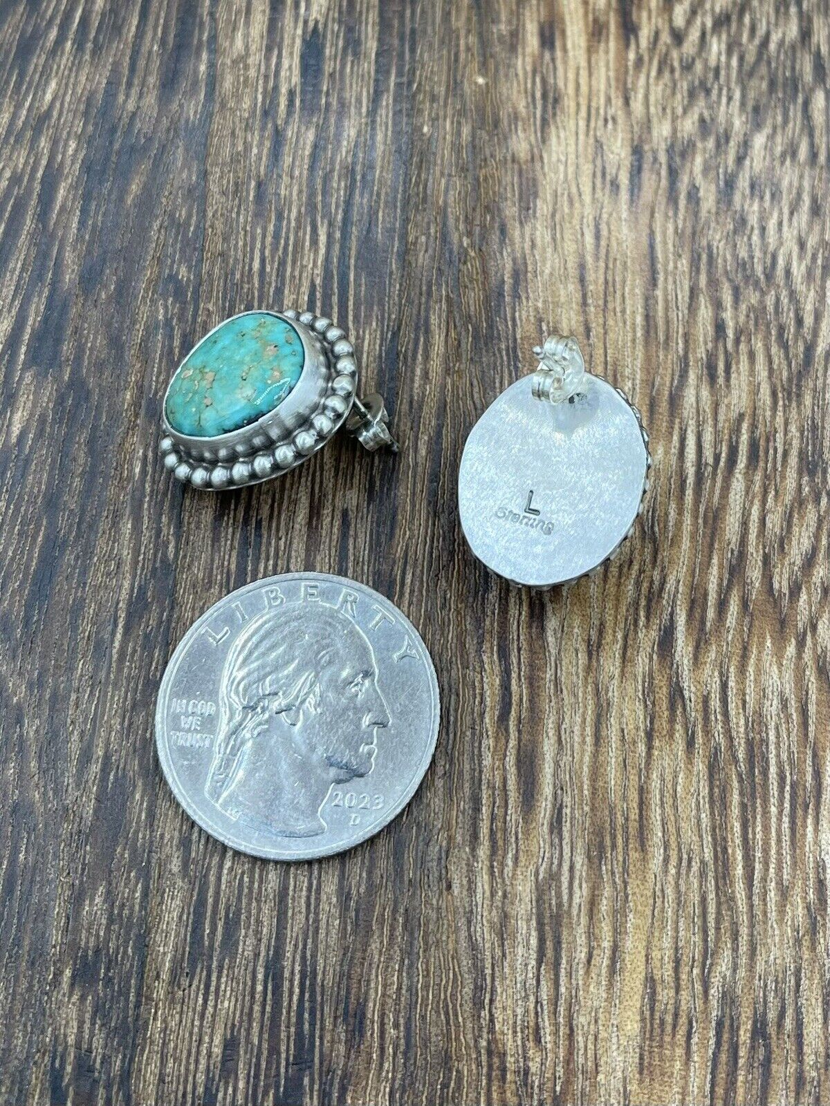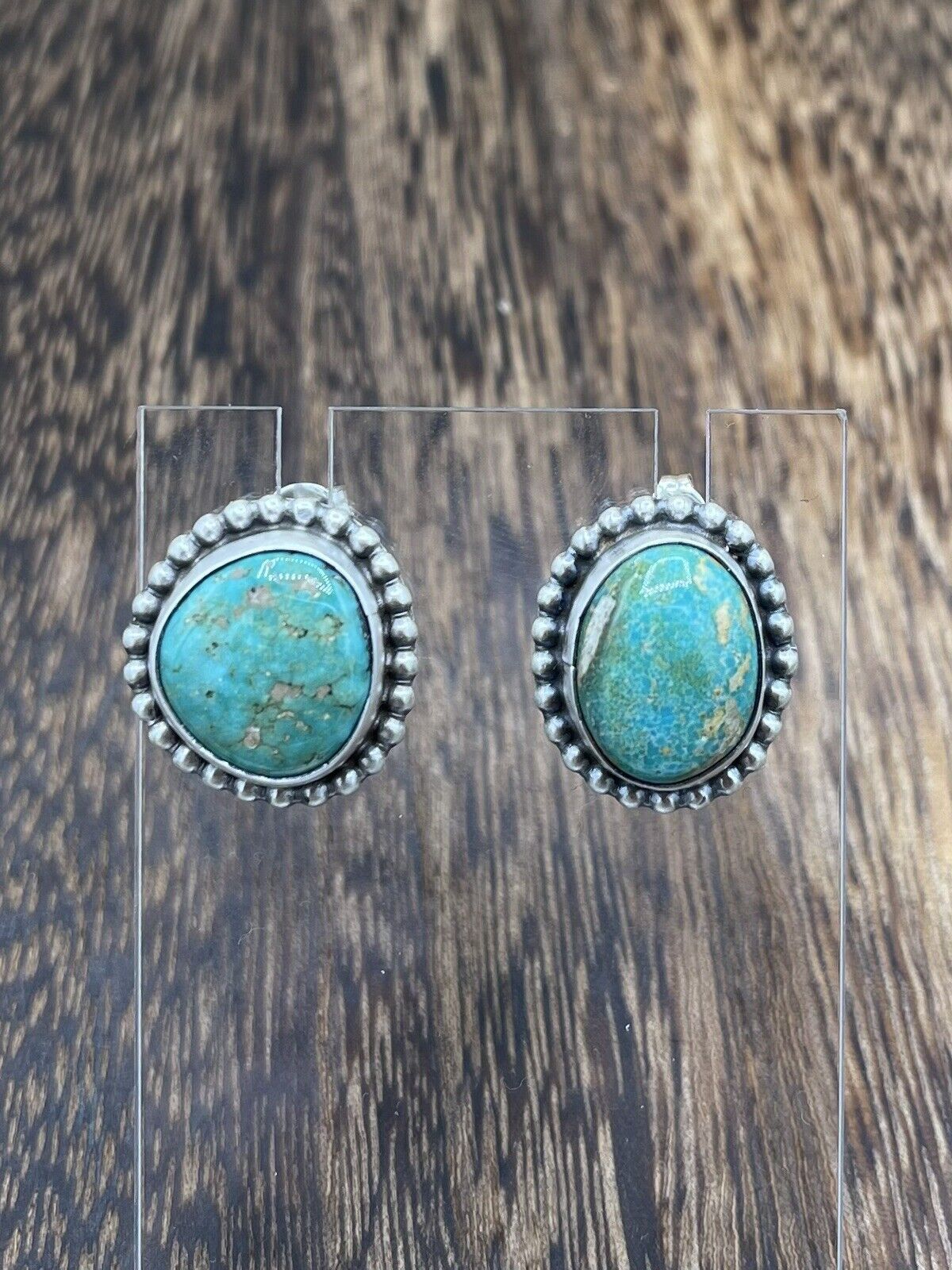 Native American Navajo Handmade Silver Sonoran Turquoise Post Stud Earrings