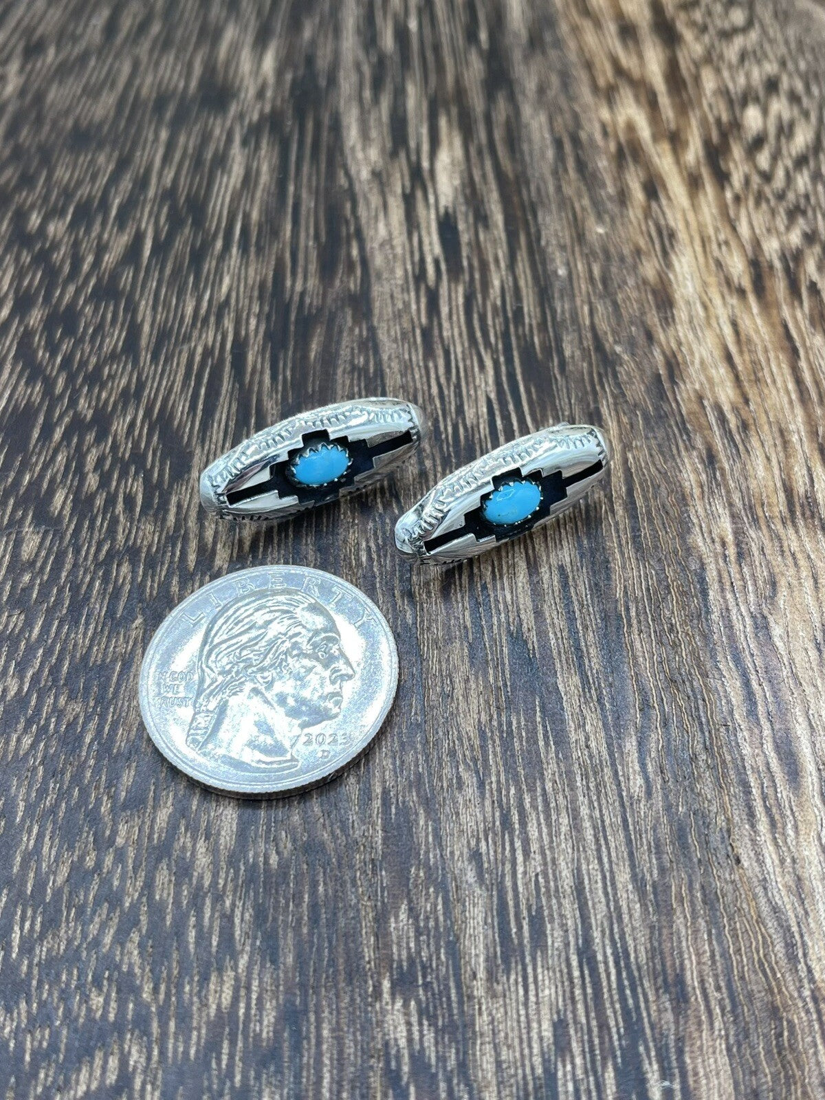Native American Navajo Handmade Silver Turquoise Post Shadowbox Earrings Felix P