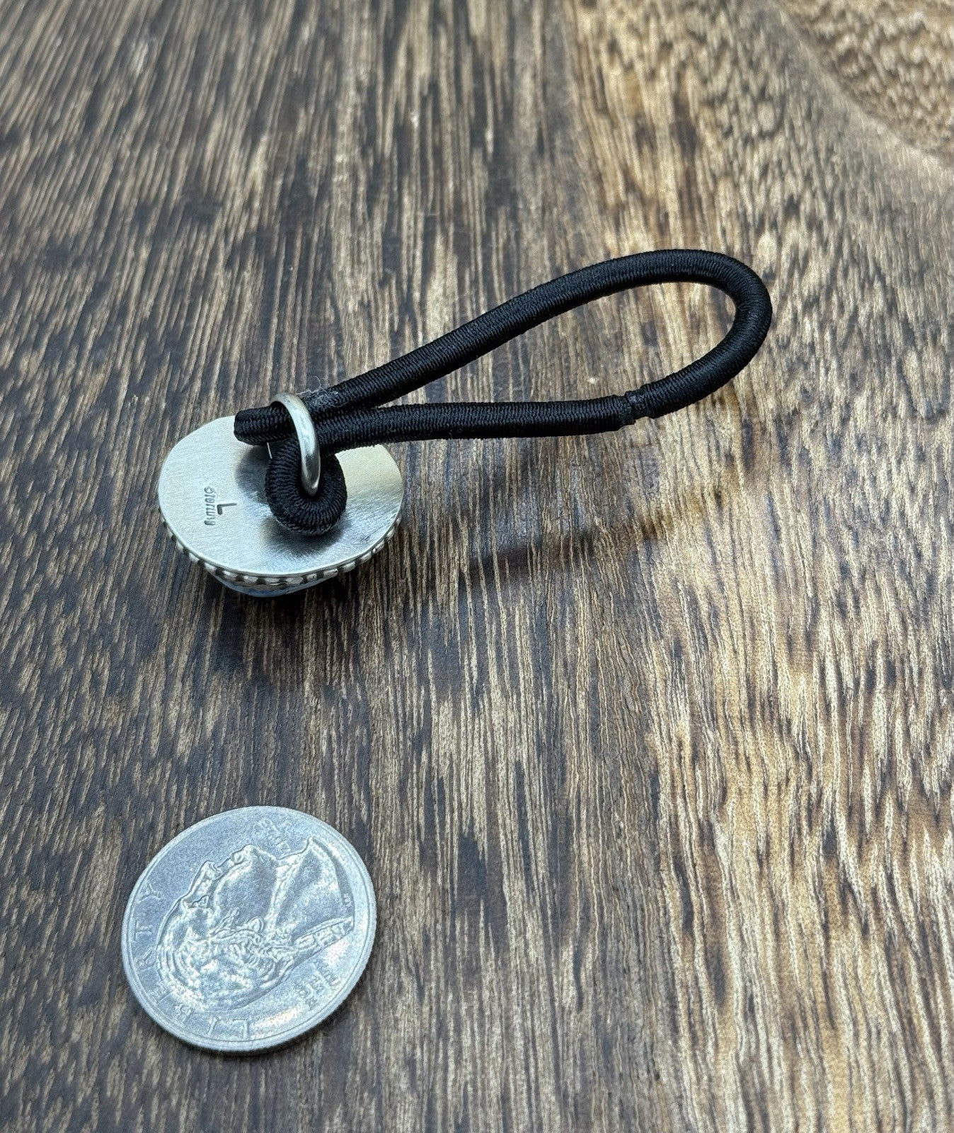 Elevate your hair accessory collection with the Native American Navajo Handmade Sterling Silver Golden Hills Turquoise Hair Tie made by LeTricia Largo. Meticulously crafted, this hair tie showcases a stunning bezel-set turquoise cabochon, capturing the essence of the Southwest's beauty. The sterling silver construction, hallmarked with a purity of 925, ensures durability and a timeless shine.