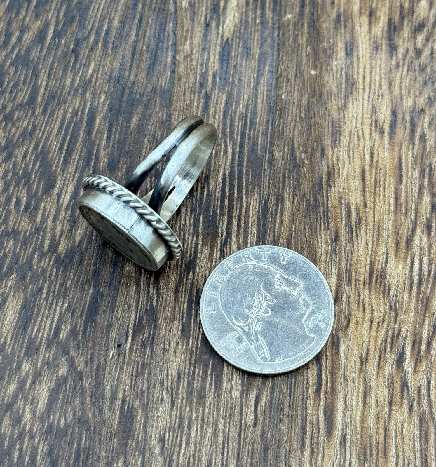 Native American Navajo Handmade Sterling Silver Liberty Dime Ring Size 7