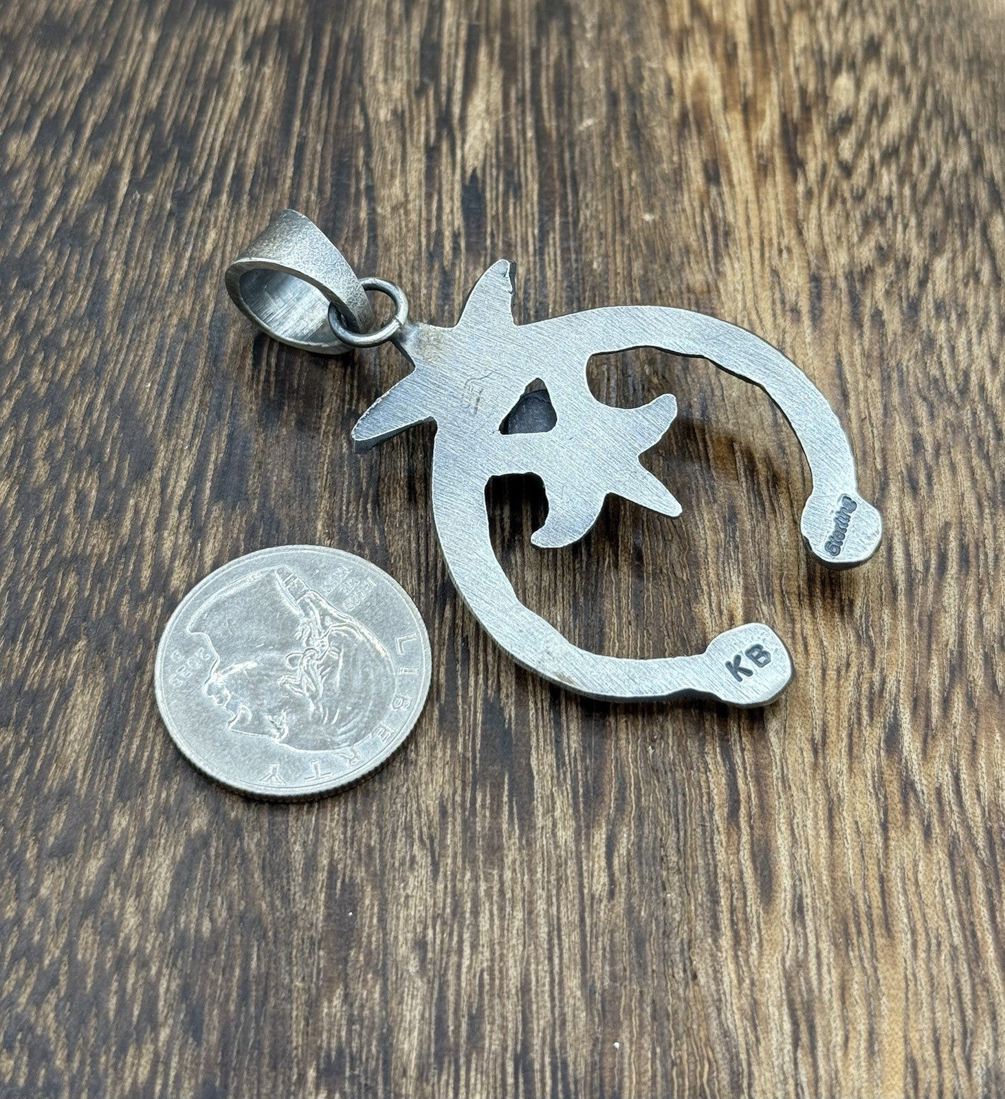 This beautiful pendant is a true work of art. Handmade by Kevin Billah, a Native American artisan, it features a unique dangle shape and a bezel setting style. The pendant is made of 925 sterling silver and adorned with a stunning Pink Conch shell stone.