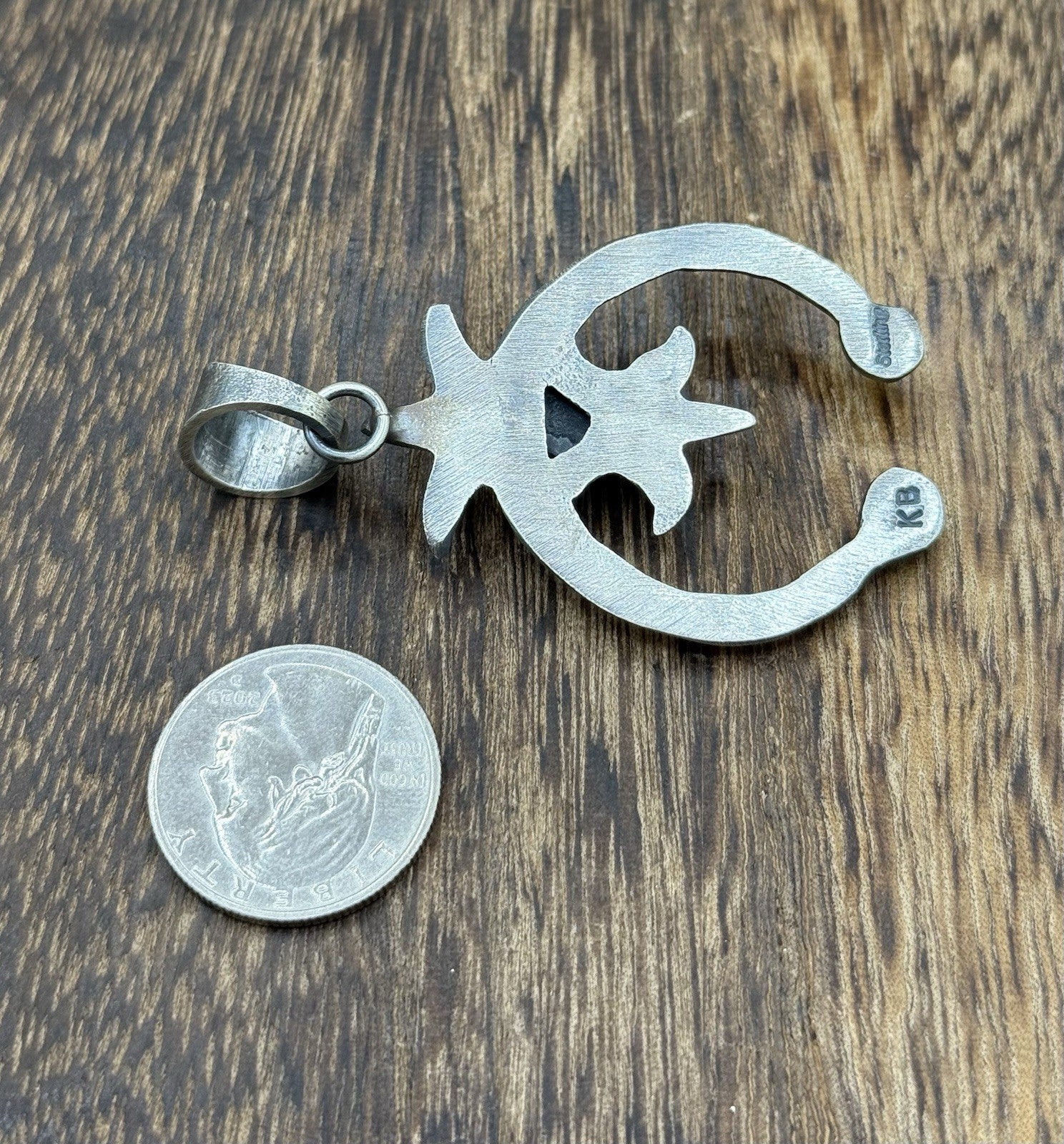 This beautiful pendant is a true work of art. Handmade by Kevin Billah, a Native American artisan, it features a unique dangle shape and a bezel setting style. The pendant is made of 925 sterling silver and adorned with a stunning Pink Conch shell stone.