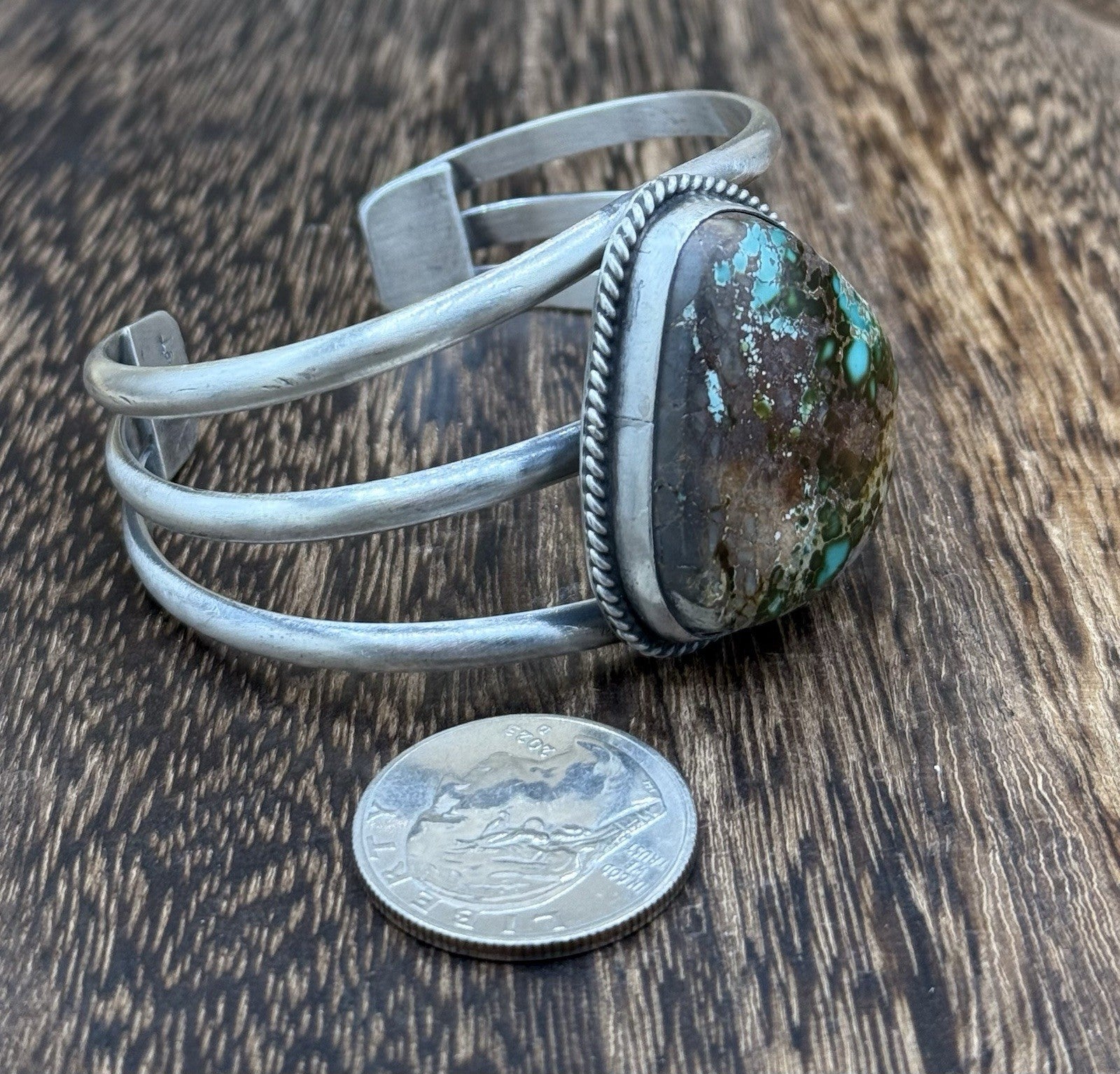 Native American Navajo Handmade Sterling Silver Royston Turquoise Cuff Bracelet