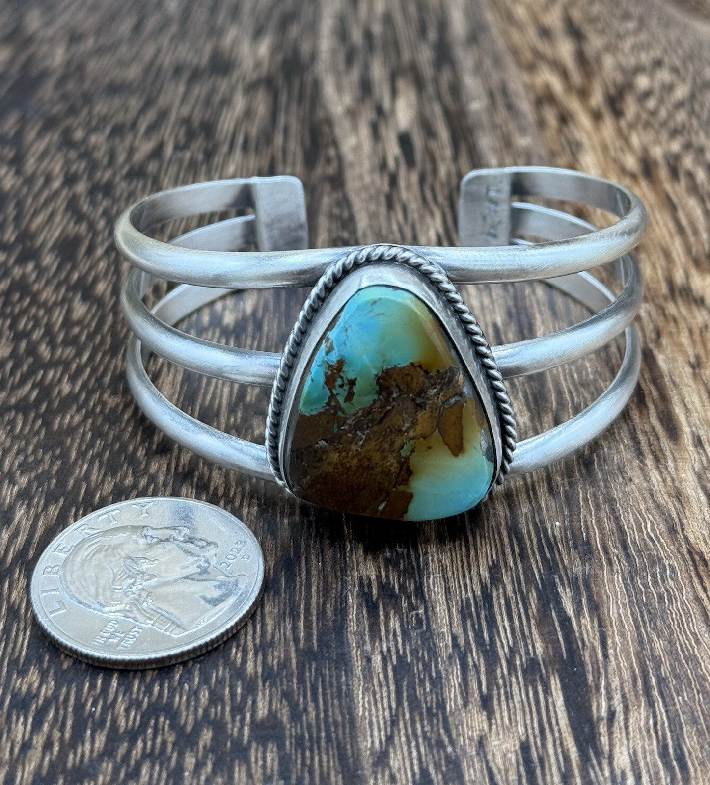 Native American Navajo Handmade Sterling Silver Royston Turquoise Cuff Bracelet