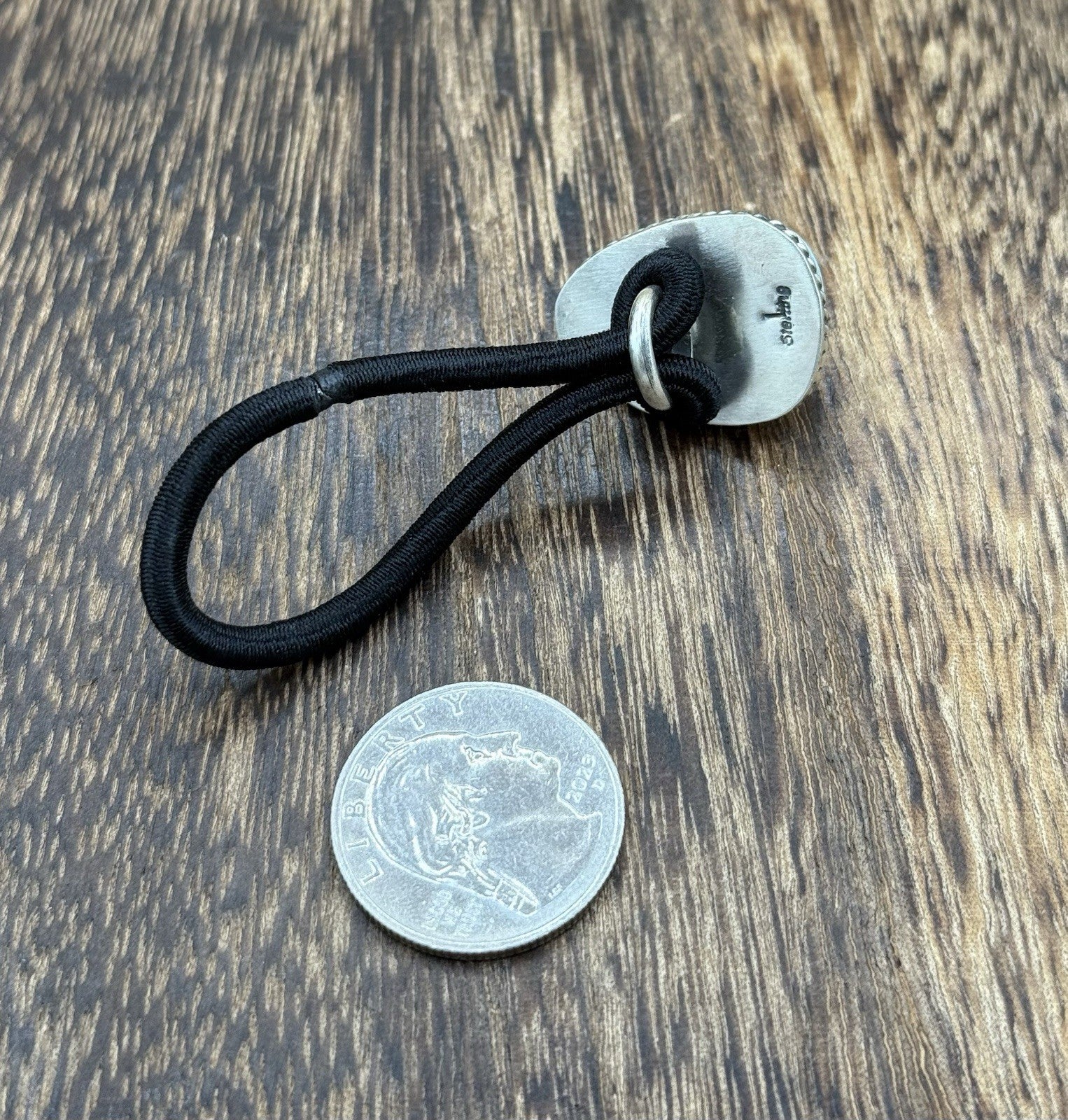 Elevate your hair accessory collection with the Native American Navajo Handmade Sterling Silver Royston Turquoise Hair Tie made by LeTricia Largo. Meticulously crafted, this hair tie showcases a stunning bezel-set turquoise cabochon, capturing the essence of the Southwest's beauty. The sterling silver construction, hallmarked with a purity of 925, ensures durability and a timeless shine.