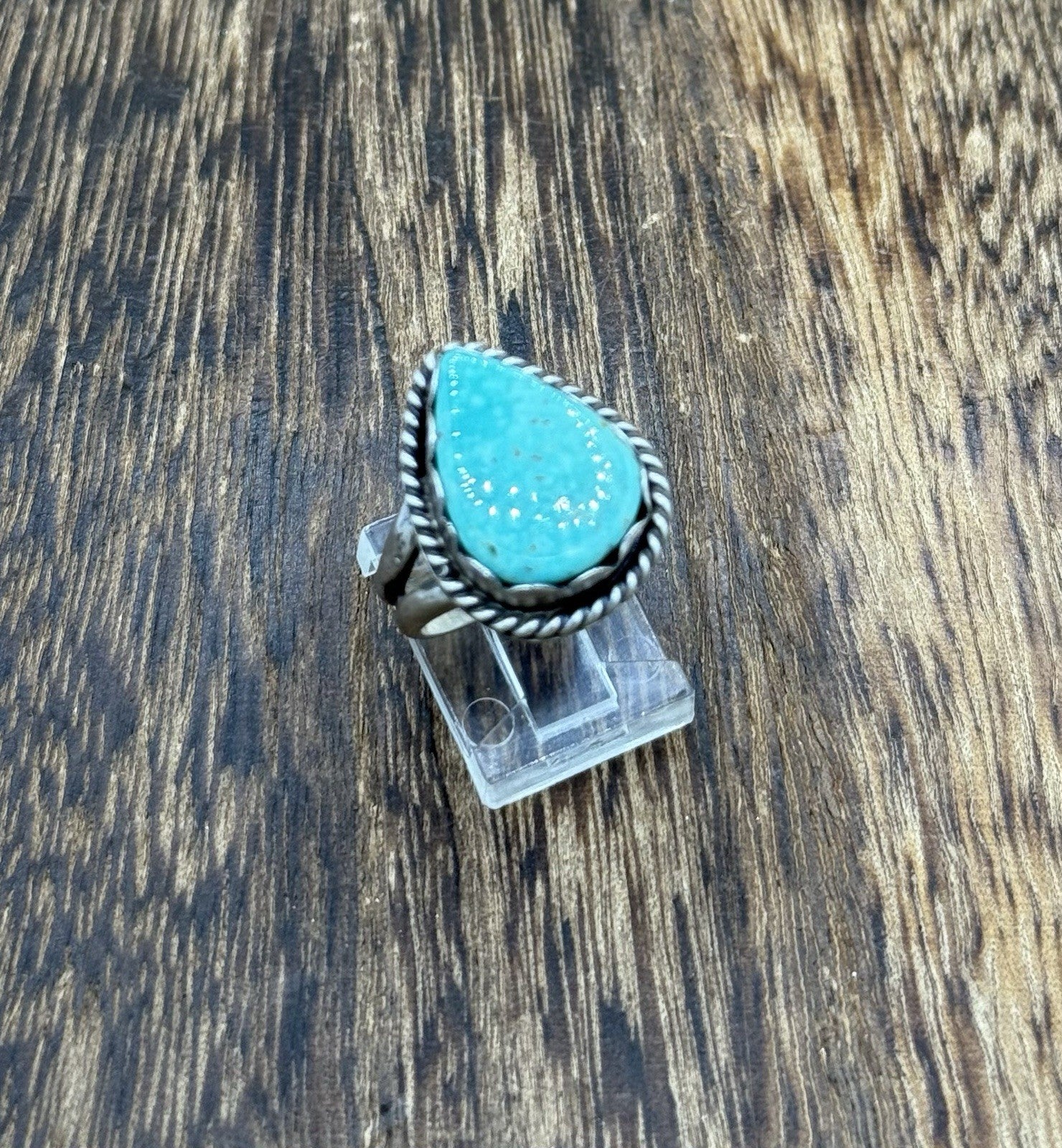 Native American Navajo Handmade Sterling Silver Royston Turquoise Ring Size 7