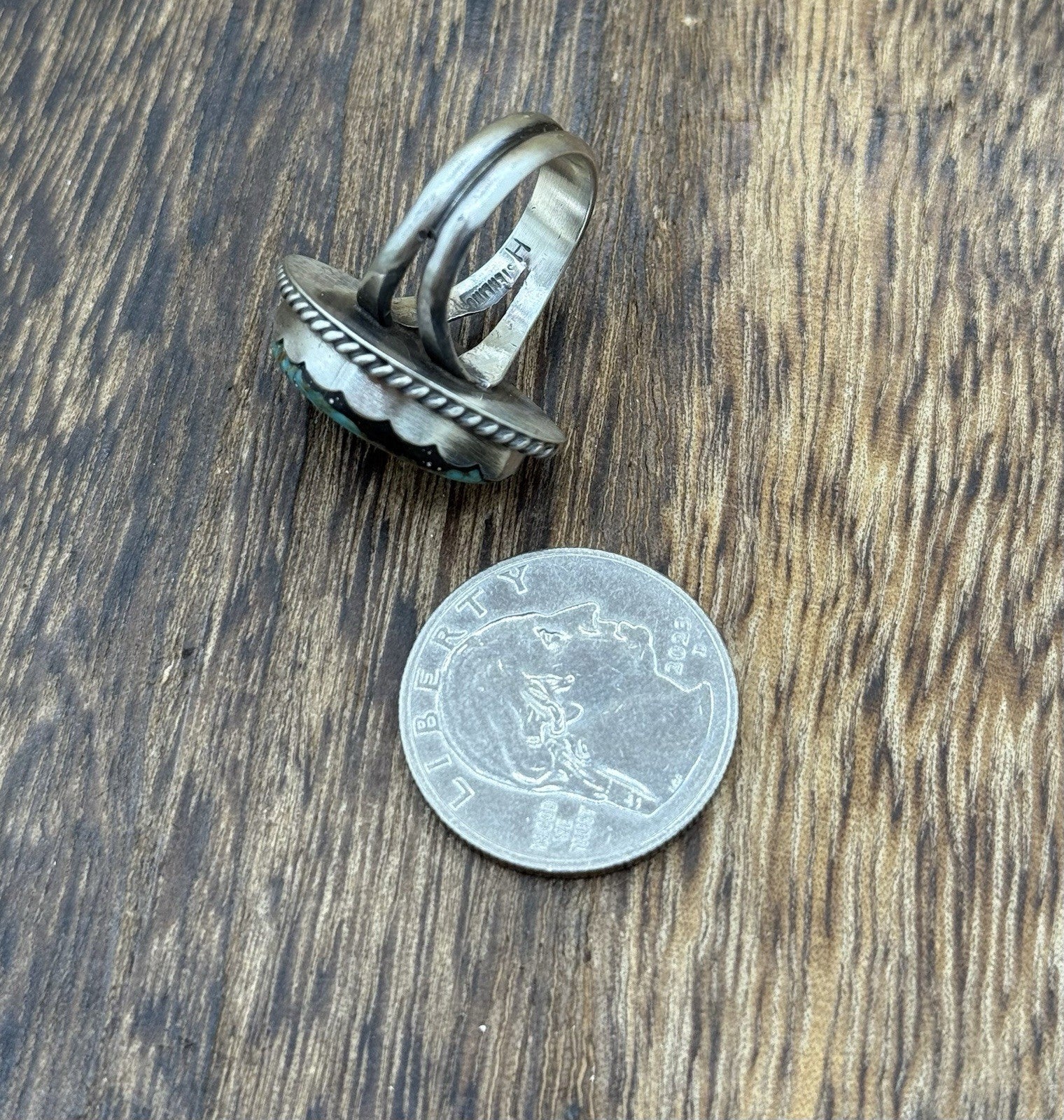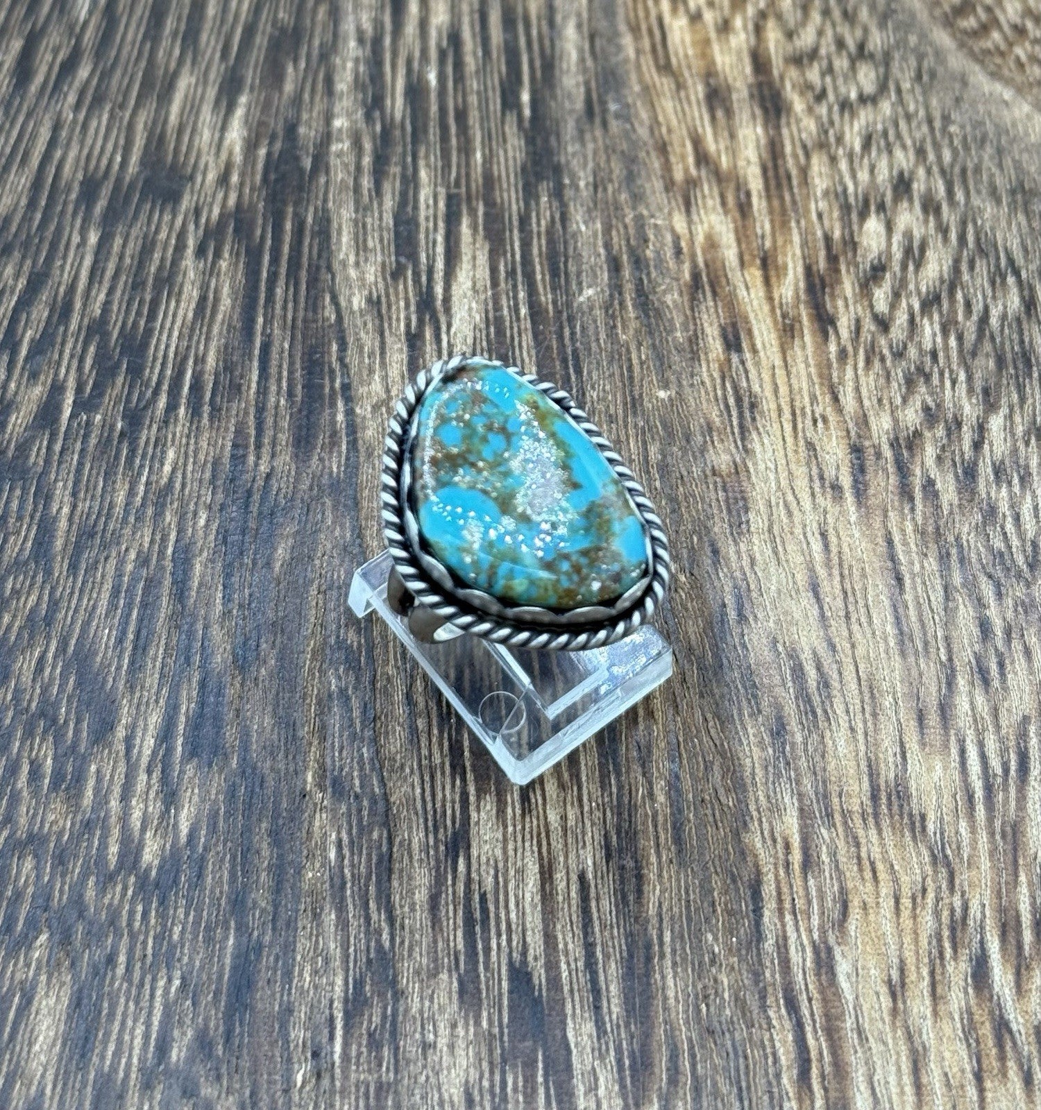 Native American Navajo Handmade Sterling Silver Royston Turquoise Ring Size 7