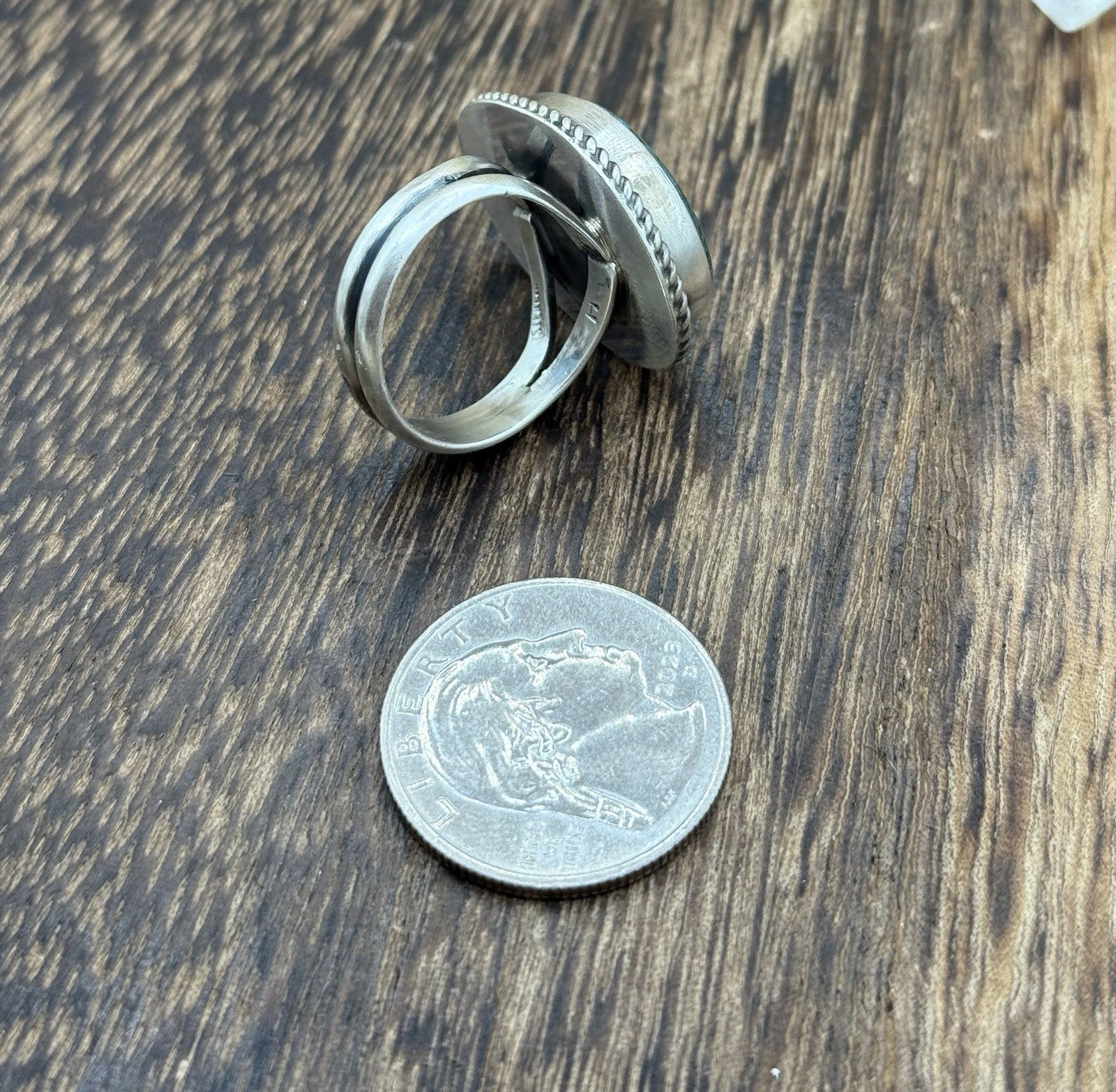 Native American Navajo Handmade Sterling Silver Royston Turquoise Ring Size 8