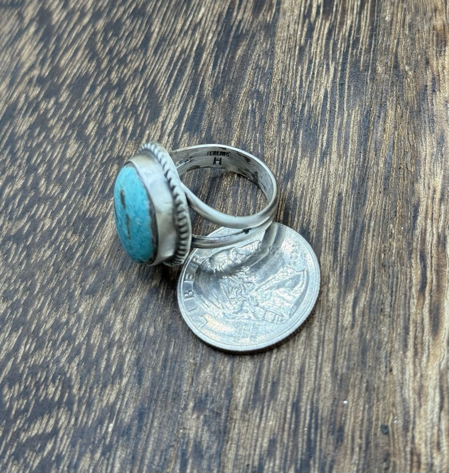 Native American Navajo Handmade Sterling Silver Royston Turquoise Ring Size 8