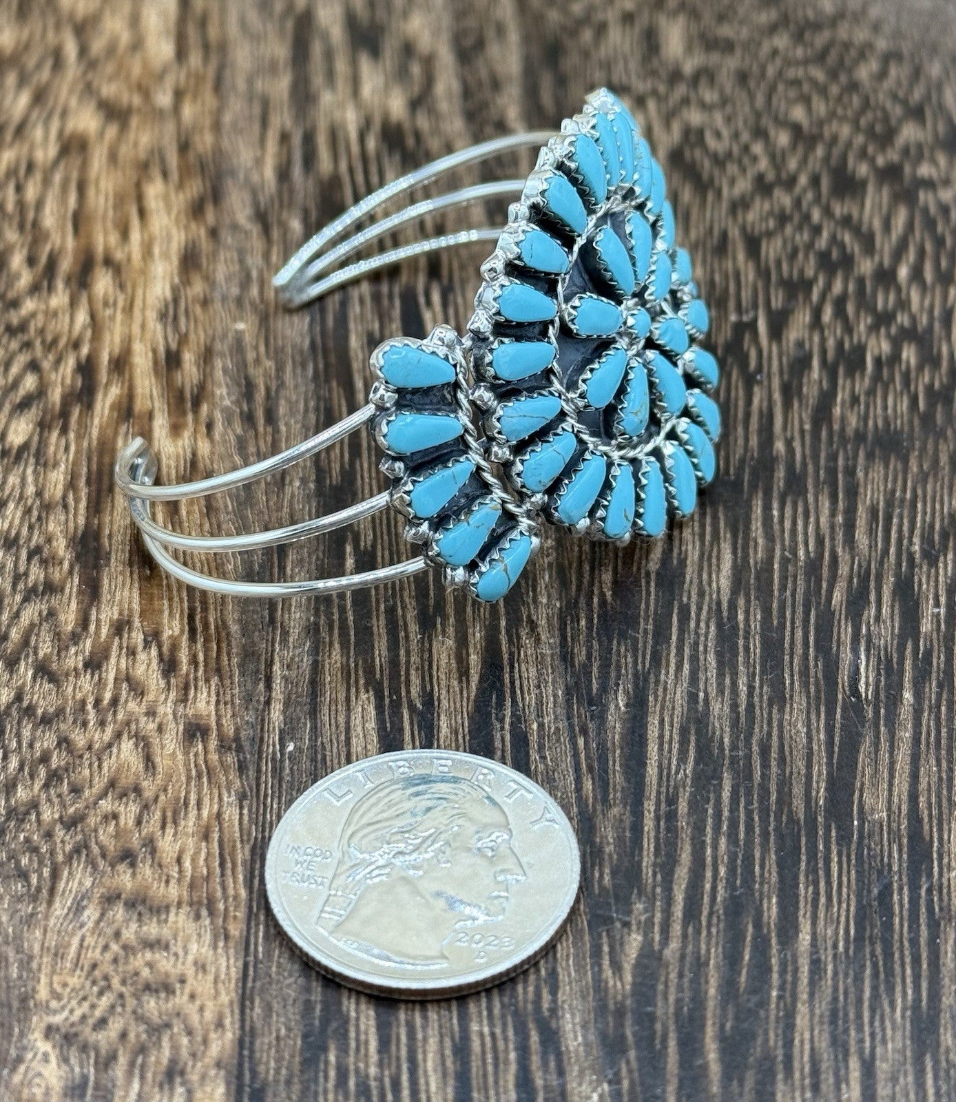 Native American Navajo Handmade Sterling Silver Turquoise Cluster Cuff Bracelet