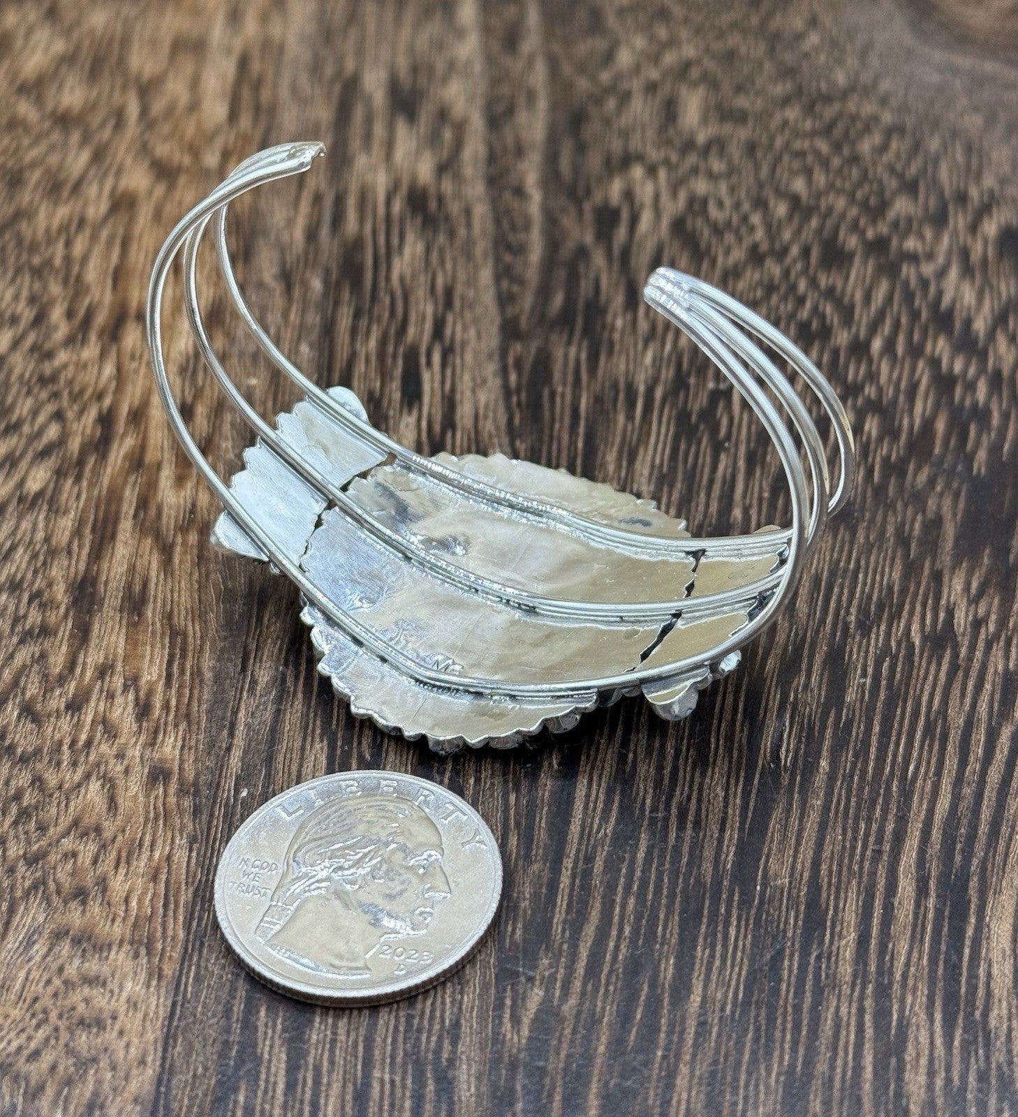 Native American Navajo Handmade Sterling Silver Turquoise Cluster Cuff Bracelet
