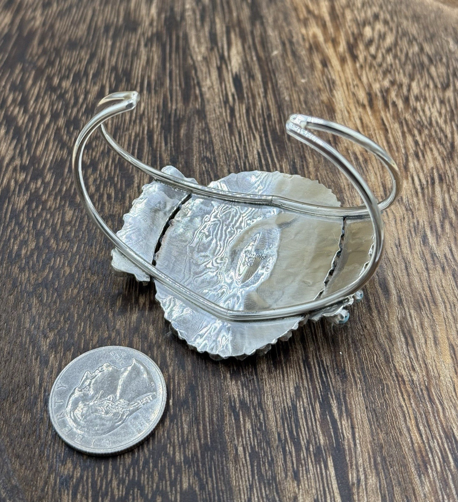 Native American Navajo Handmade Sterling Silver Turquoise Cluster Cuff Bracelet