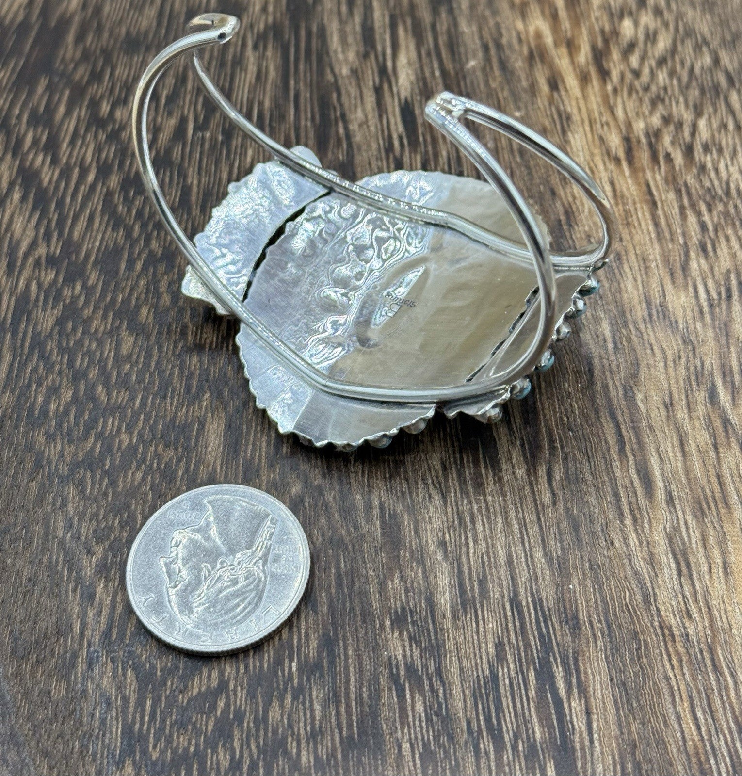 Native American Navajo Handmade Sterling Silver Turquoise Cluster Cuff Bracelet