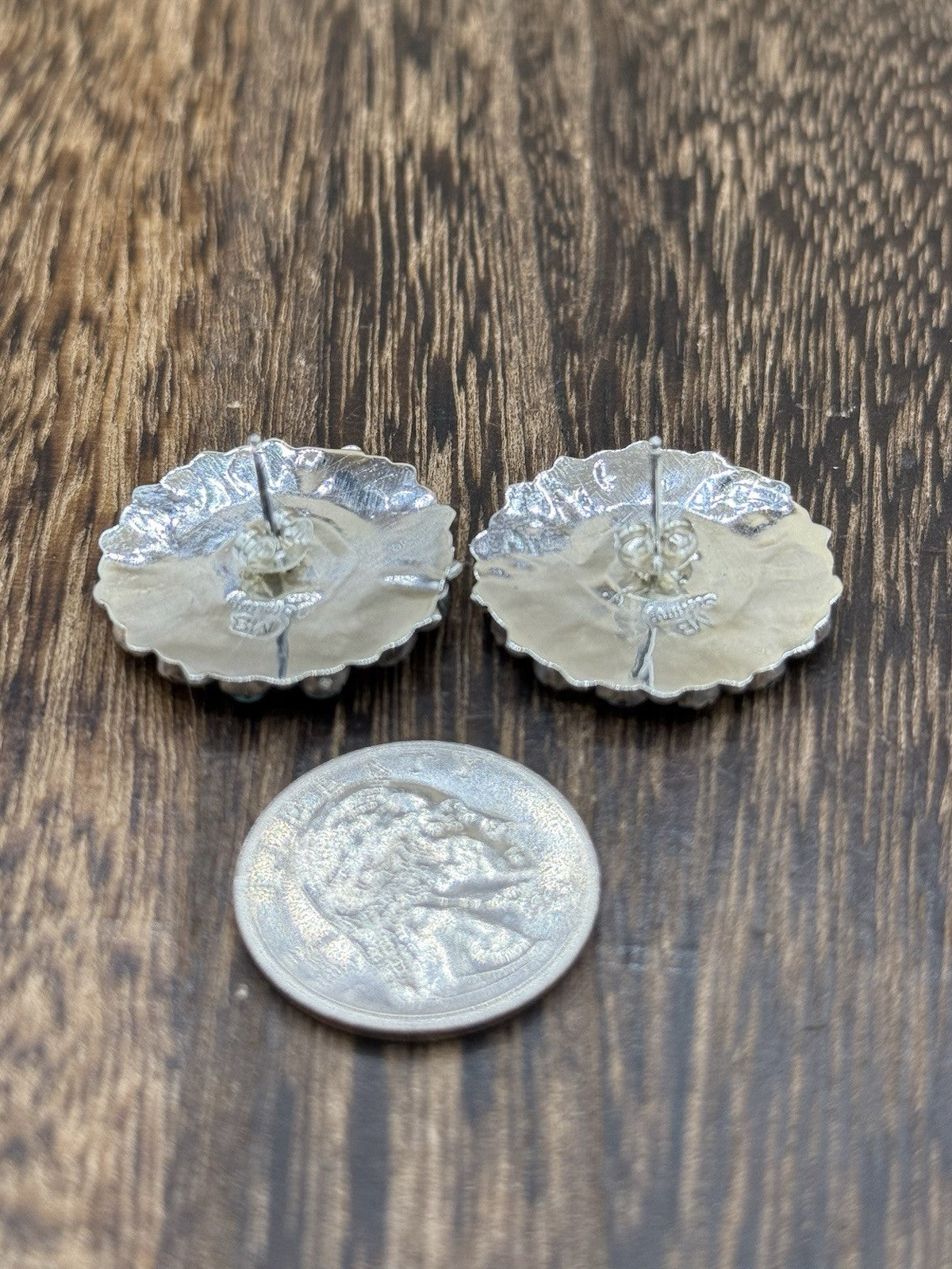 Native American Navajo Handmade Sterling Silver Turquoise Cluster Post earrings
