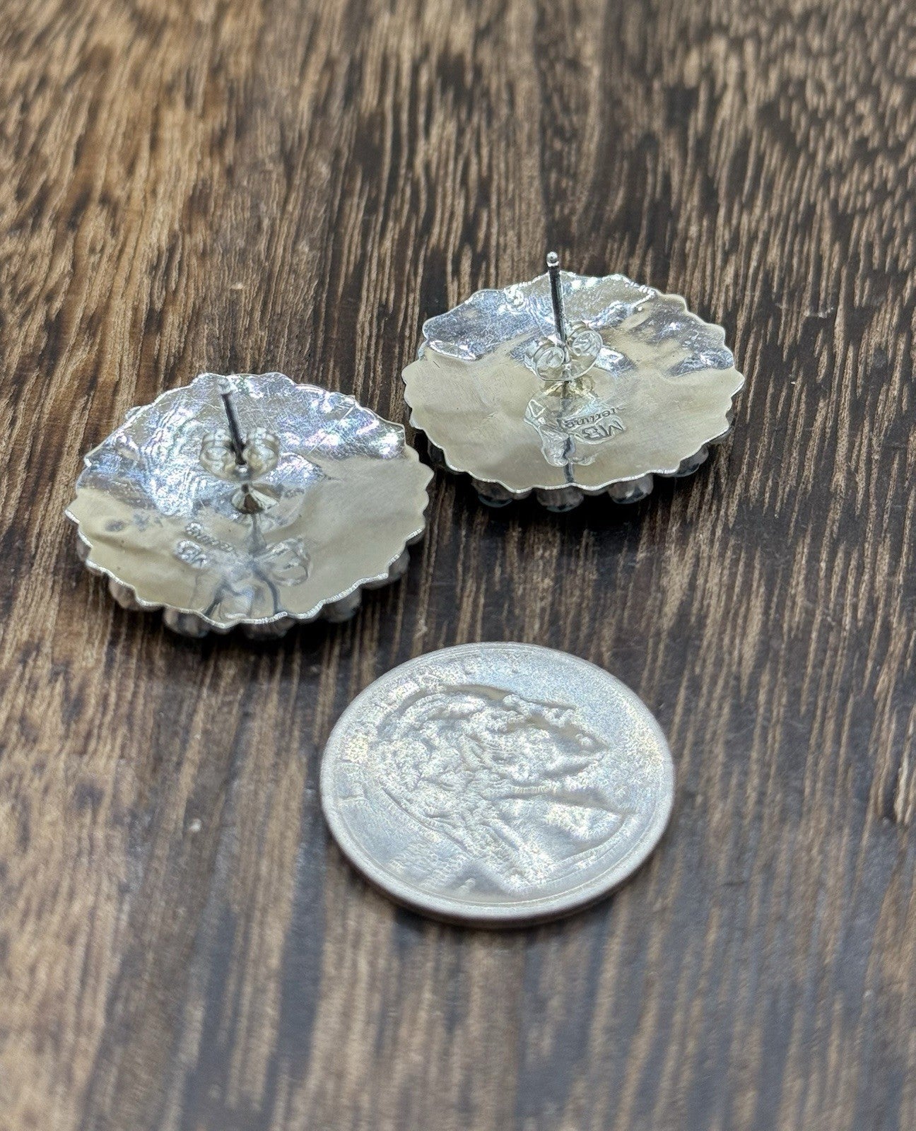 Native American Navajo Handmade Sterling Silver Turquoise Cluster Post earrings