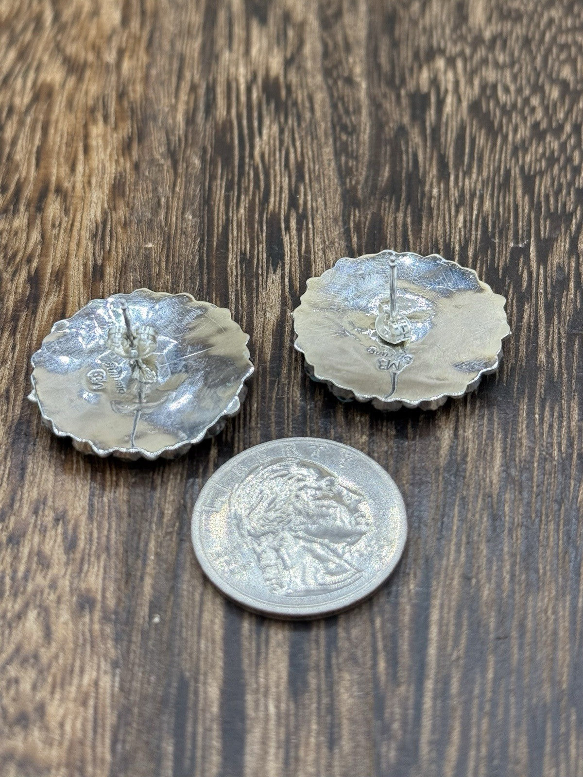 Native American Navajo Handmade Sterling Silver Turquoise Cluster Post earrings